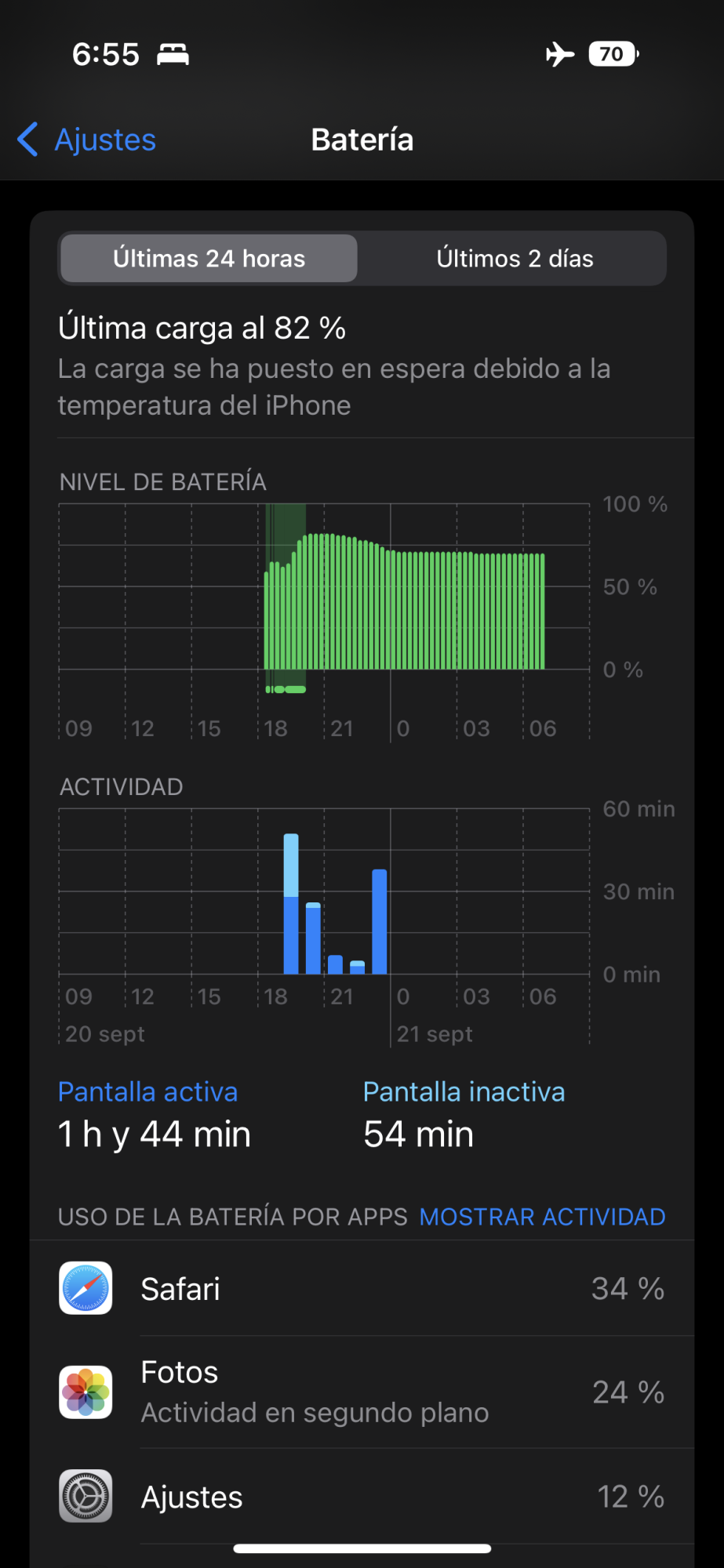Also AoD is activated, location servicies disabled, airplane mode activated, background app refresh disabled, haptic keyboard enabled, sounds muted, auto brightness off and email fetch set to manual.