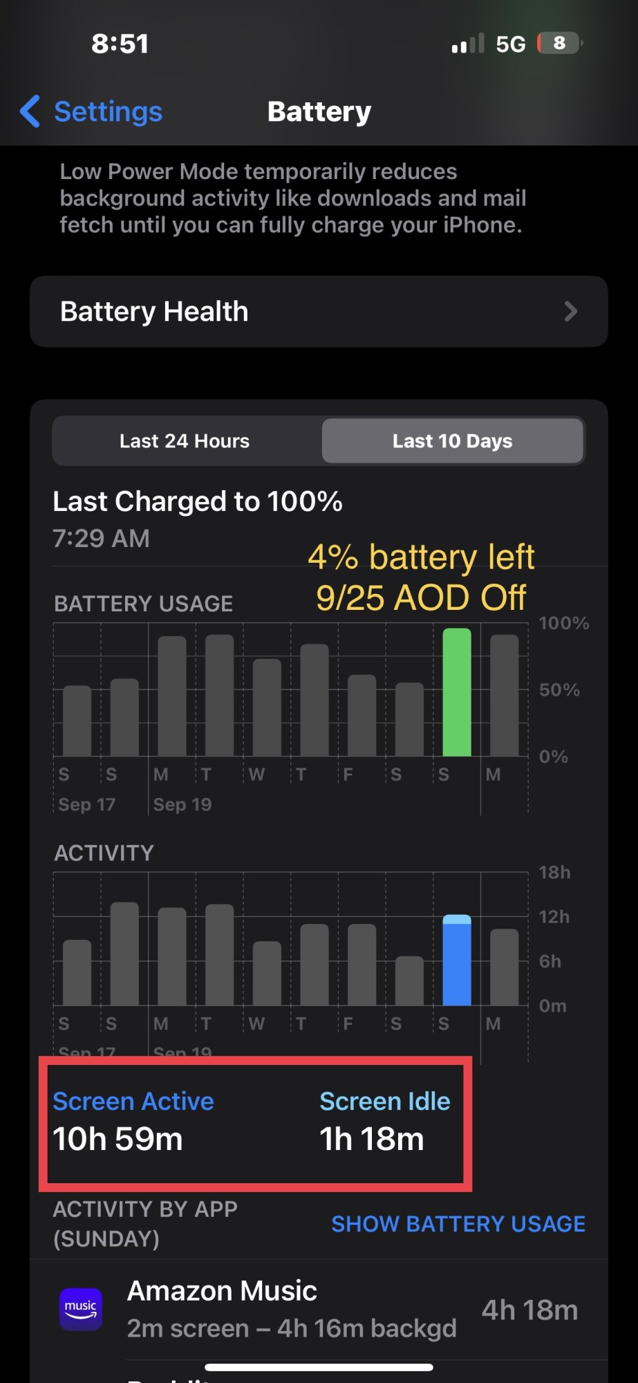 Well I get about 3 hours of SOT on my 14 Pro with AOD off and 4G off most of the time from 100% to 10-15% with very light usage. With iOS 16.0.3 this has been hell.AOD off
