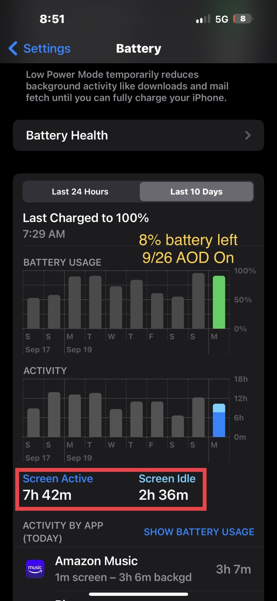 I assume that is with aod on?Experienced the same. Lost around 9% over night and battery settings reads 100% find my.