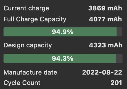 Full Charge Capacity slowly climb beyond what was reported/identified when you launched the app.