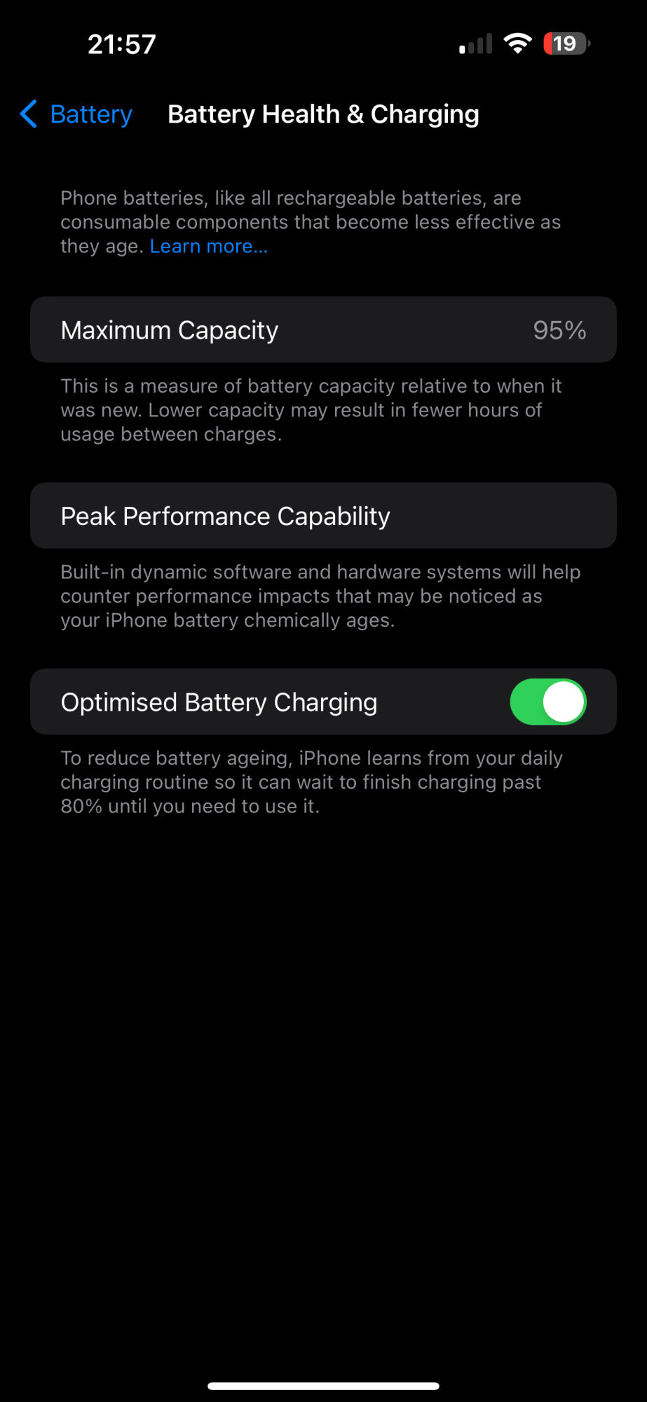 Down to 95% now.I’ve recently dropped to 96%. It’s definitely way faster than the 13 Pro Max I handed in last year. It was at 100% when I upgraded to the 14 Pro Max.
