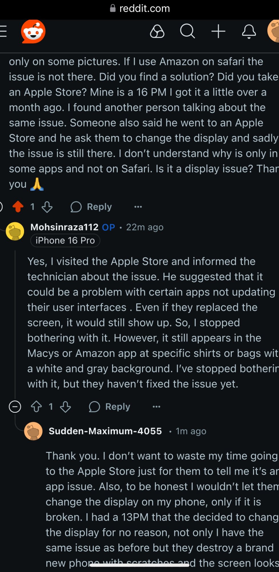 When I am in certain applications, mainly shopping apps, I sometimes get these white horizontal lines appearing whilst scrolling up and down. I have attached a video of the issue. I have taken it to Apple and they completely replaced the screen but I am still getting this issue. Has anyone else had this problem?