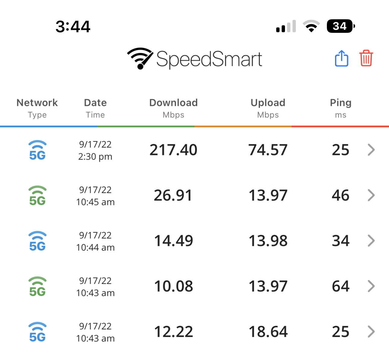 Yes they are especially when signal was closer here is my revord in this app. It’s twice as fast in some cases than last phone in recorded speedtest log (marked by black)Signal strength is arbitrary. It all depends how they calibrate the icon. What should be better is speed. Are the speeds faster with the 14?