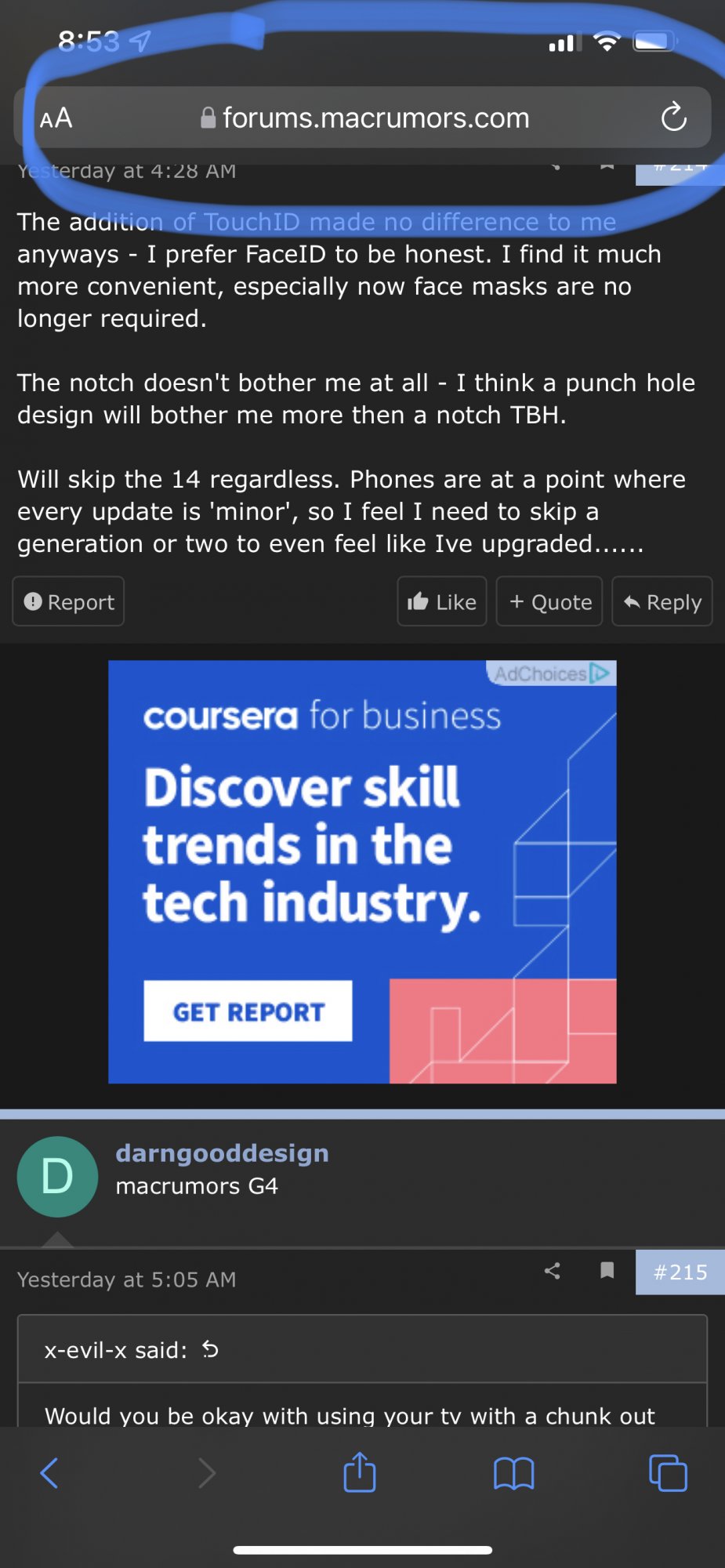 Well, I still have an iPhone 11 Pro Max, but only as a secondary phone now, I don't carry it with me. And yes, I absolutely hate the notch, so much so it was one reason I switched to an android phone. The other reason is I wanted a more advanced phone. (flip3, folding screen, better wifi, better screen...) I wont be buying a new iPhone until they get rid of the notch, and hopefully fold like the flip3.I still wonder how many of the notch "haters" actually use a notched iPhone. I hardly ever notice or care about the thing in day to day use.