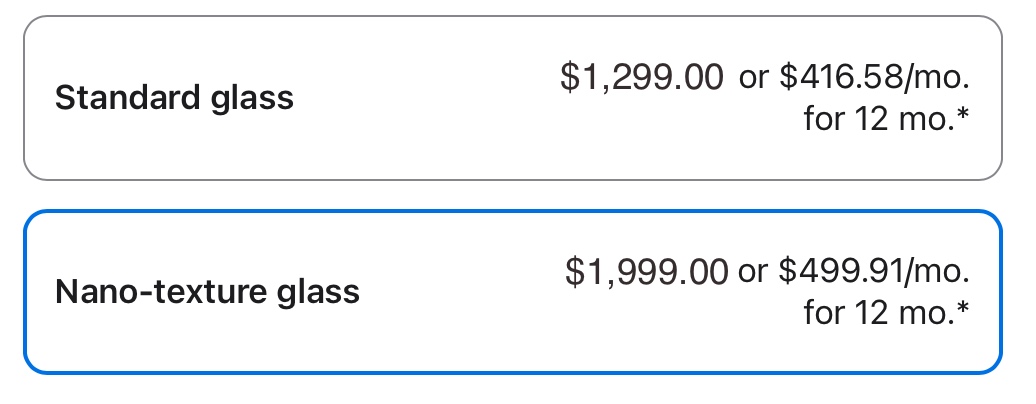 I heard it will be the nano textured glass like used in the displays, here is the leaked pricing scheme:
