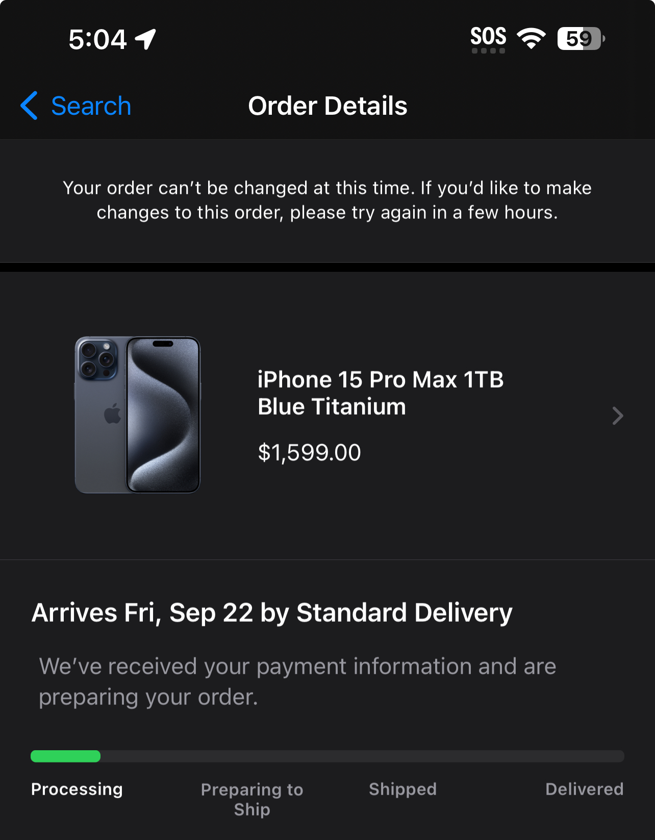 I am livid. Up at 5am per usual and order using my Apple account balance. It won’t take it and trying to charge as a credit card. Call Apple yeah we know about it. Trying to push it through by switching me to a team member that can do it. Disconnected. After hour and a half wait. This is the worst ever. Never had this problem before. I am on hold again calling back for another 50 min wait. Apple screwed so many for launch day using Apple balance. Showing Oct 9-16 now.