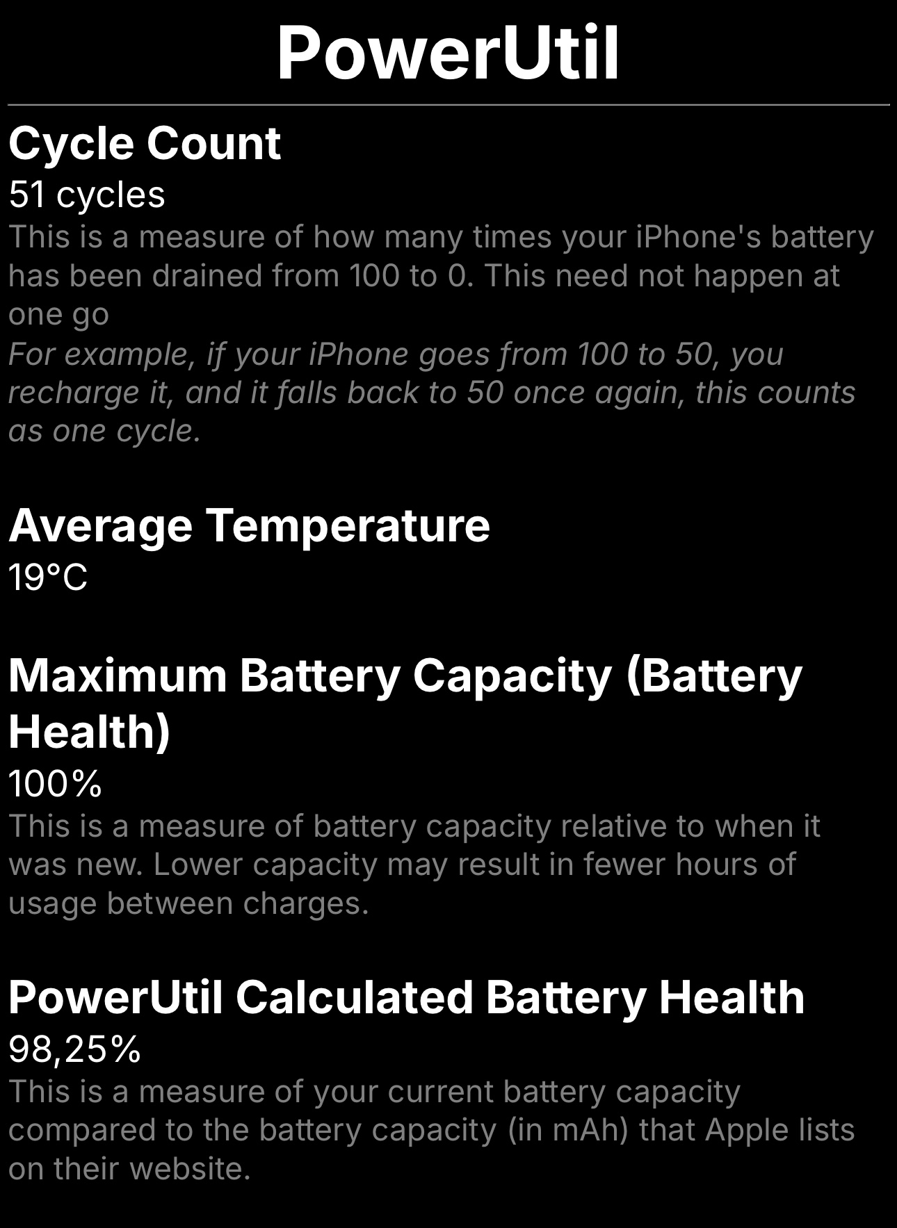 Hello everyone, since unfortunately the % information in the battery app is not displayed correctly, I have also attached the information read from the "PowerUtil" and "Battery Stats" shortcuts.