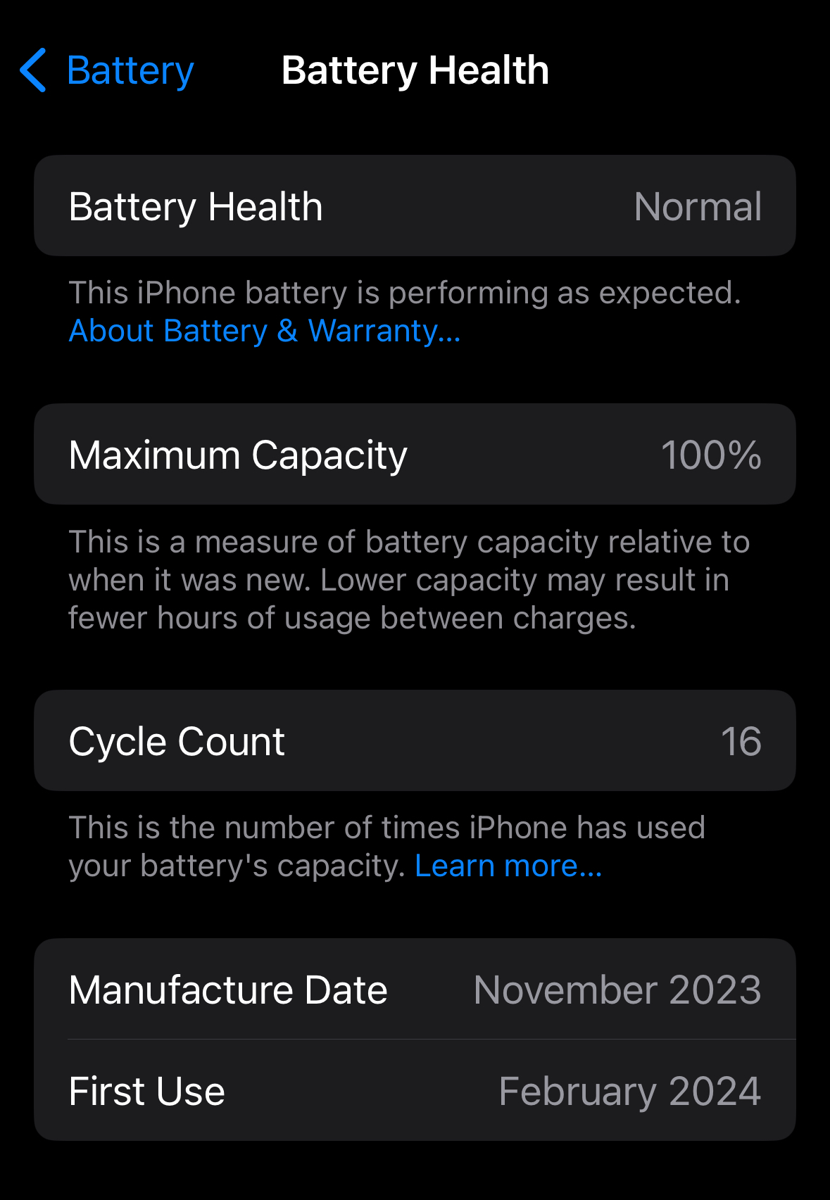I have other devices so that's probably why the cycle count is low-ish - battery usage is spread out across them all.