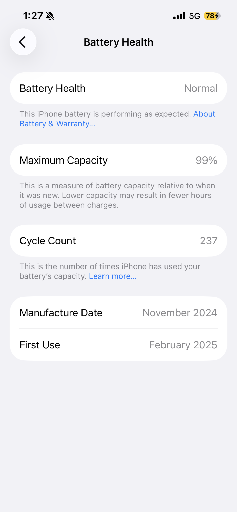 Finally it dropped to 99% after 237. Like I can’t count the OG SE ( because battery health was a thing due to a lawsuit and I didn’t bother to look at the cycle count much).236 cycles and still at 100%