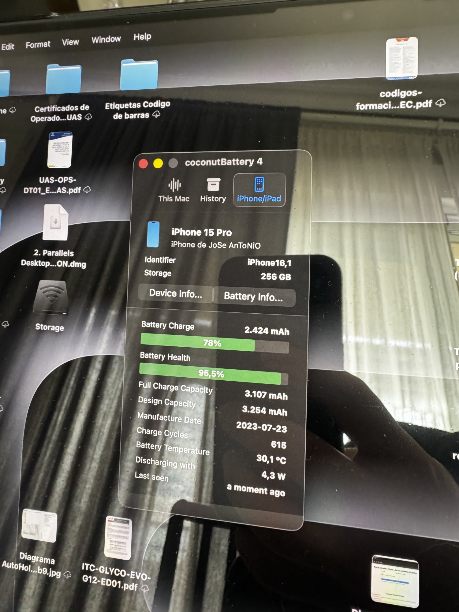That is brilliant, a colleague of mine had similar on his 15 Pro, about 1100 cycles with 86% health if I remember correctly.