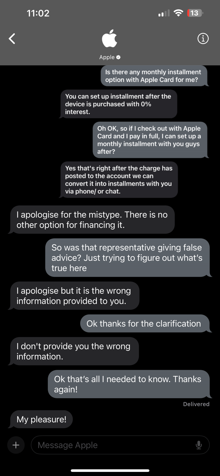 I made sure to let the GS rep know there is no point in me keeping the Apple Card if they don’t let me take advantage of the free financing.