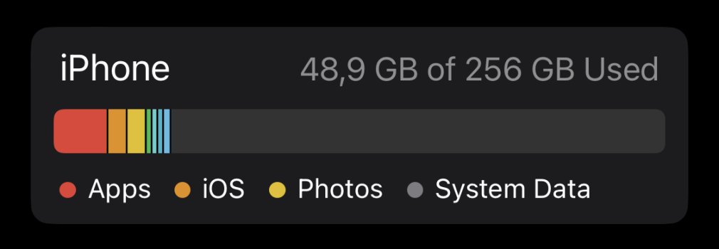 THIS is why I got the 1TB on my 14 pro max… that and Disney pics/videosUpgrading from 256 to 512 this year. I'm well over the 128 GB limit now. Almost all due to pet videos/pictures.. lol.