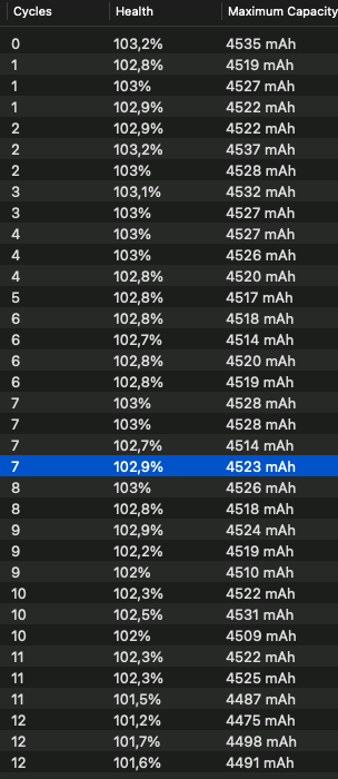 Is it the same one you use for MacBook or a separate version for phoneI started out with 4543mah and now it is at 4529mah. Just 6 charge cycles.