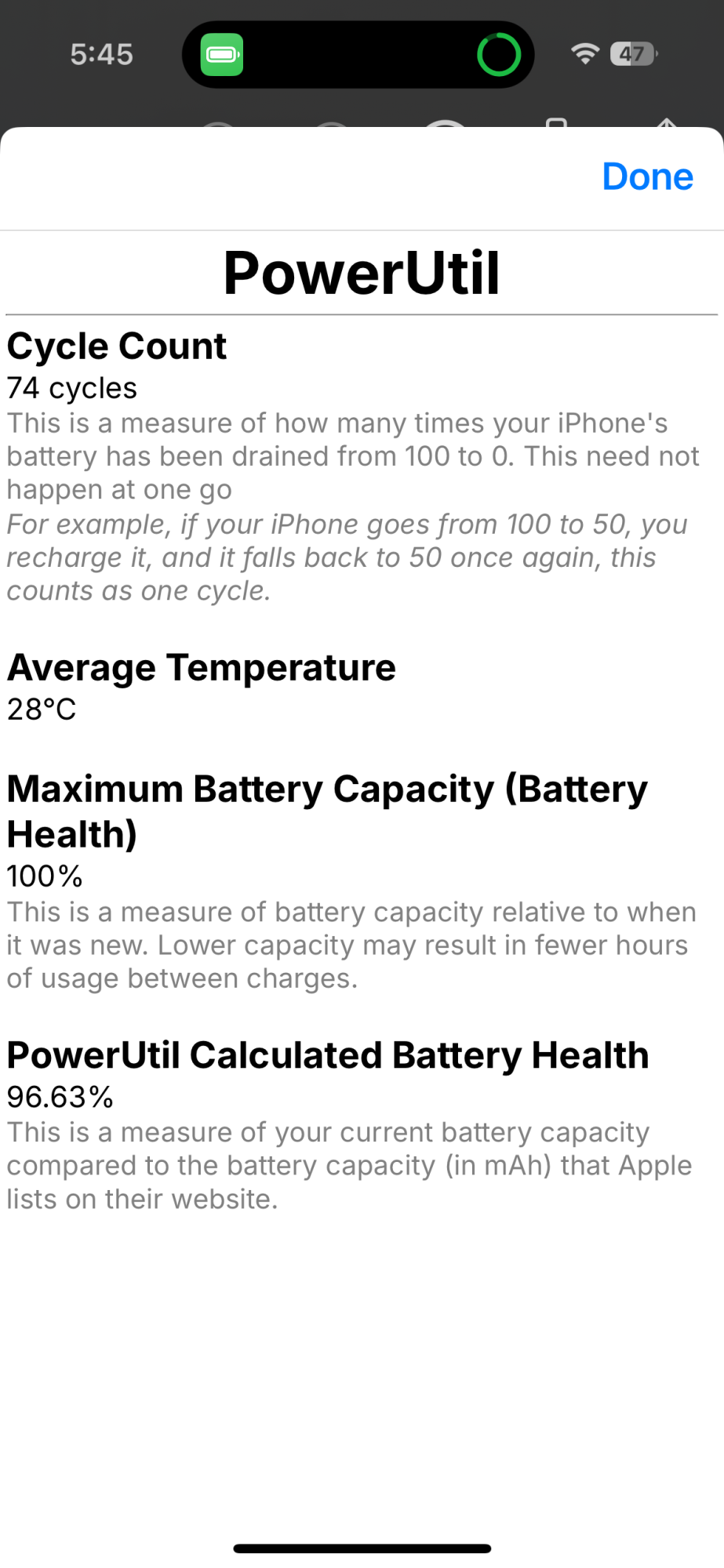 Today I ask some of my colleagues and know that their iPhone battery capacity goes down to 99-98% after like 30-45 charging cycles. (Approximately 30-45 days as we usually charge up to 1 cycle per day).