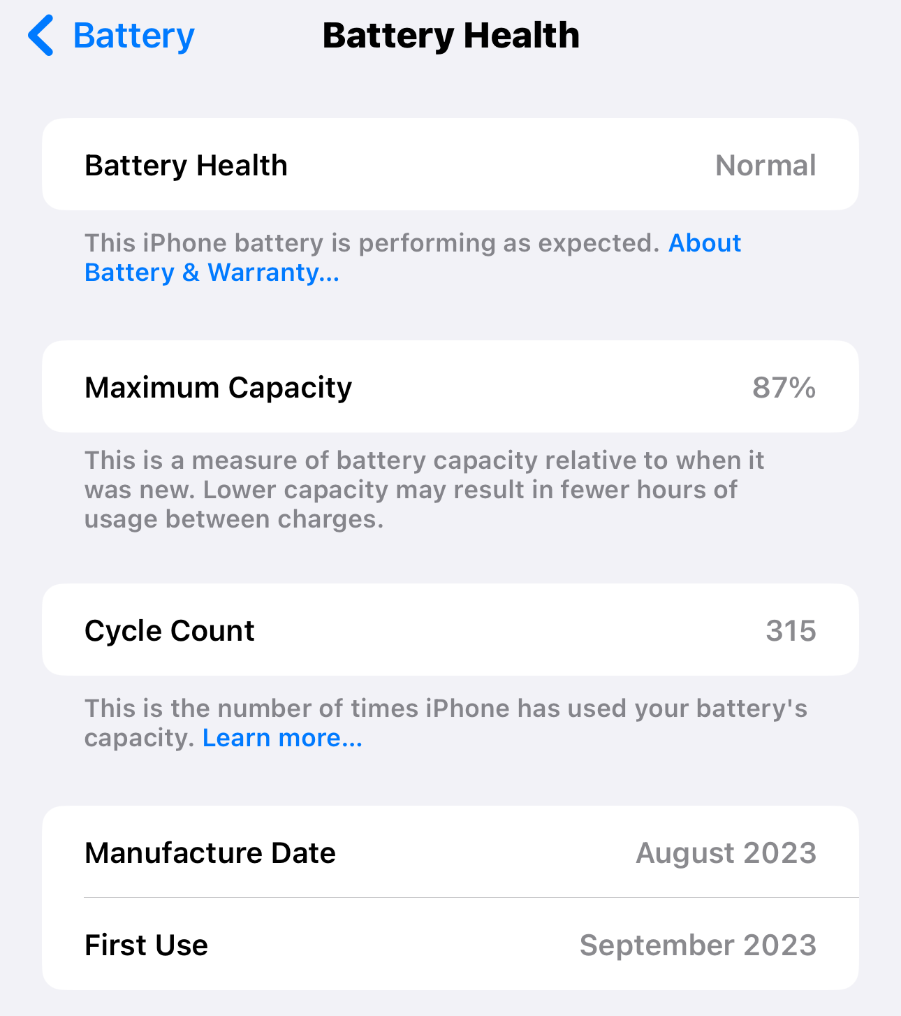 Unsurprisingly, Dan has seen some iPhone battery degradation, and it's dropped to 89 percent. That's with regular CarPlay usage, running betas, and standard day-to-day use. Even at 89 percent, the battery can still last for a full day without needing a charge.