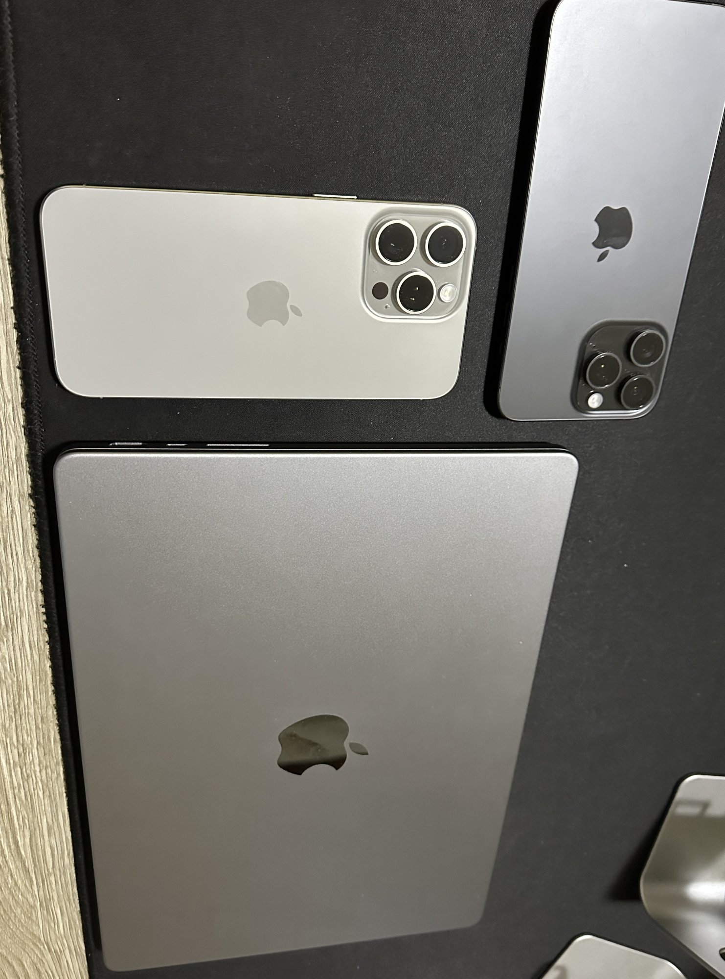 Anyone got a natural titanium iPhone 15 Pro and a space grey MacBook Pro/Air? I’d love to see how they look together!