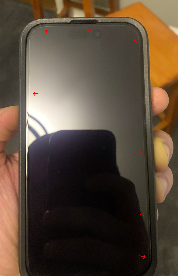 After inspecting the underside of the Torras Diamond Shield protector, the edges don't appear to be curved. This is my first time with a black-edged protector on a curved screen. I assume the black edge's purpose is to obscure/hide the surrounding areas where the flat glass does not adhere properly due to the curve (rather than attempting to adhere to it securely). When looking at my photo again, it seems like maybe the black edges are too thin to cover where the adhesion is not in place due to the curve. I know Torras has the some of the thinnest edges compared to others, so maybe it's a finicky tolerance issue on where the adhesion starts to fail? As you can see, the lifted areas are pretty thin and consistent.