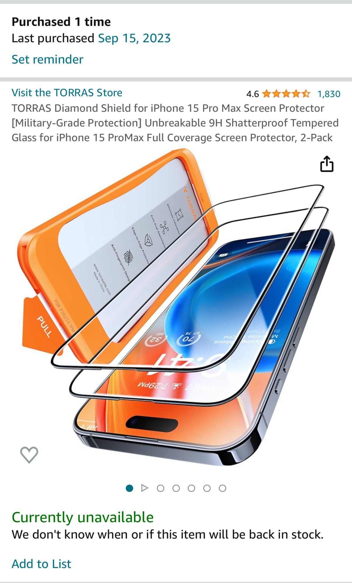 Yes it’s the TORRAS and yes I ordered from Amazon. Also yes it’s the screensaver from earlier in this thread. The TORRAS box did say made for iPhone 15 maxThat’s the TORRAS screen protector? Is that the wallpaper that was provided further back in the thread? Curious if there’s actually a new version they’ve begun making and it’s just luck of the draw as to which they are sending out. Did you order direct or from Amazon?