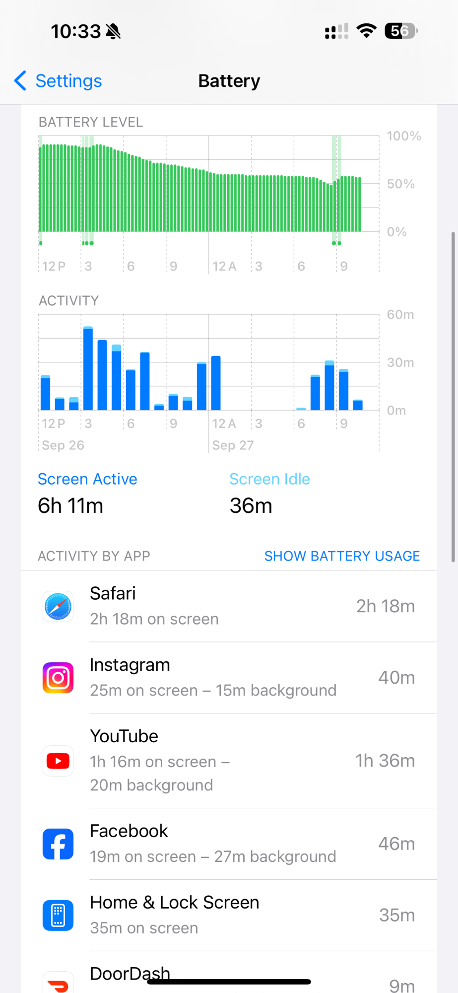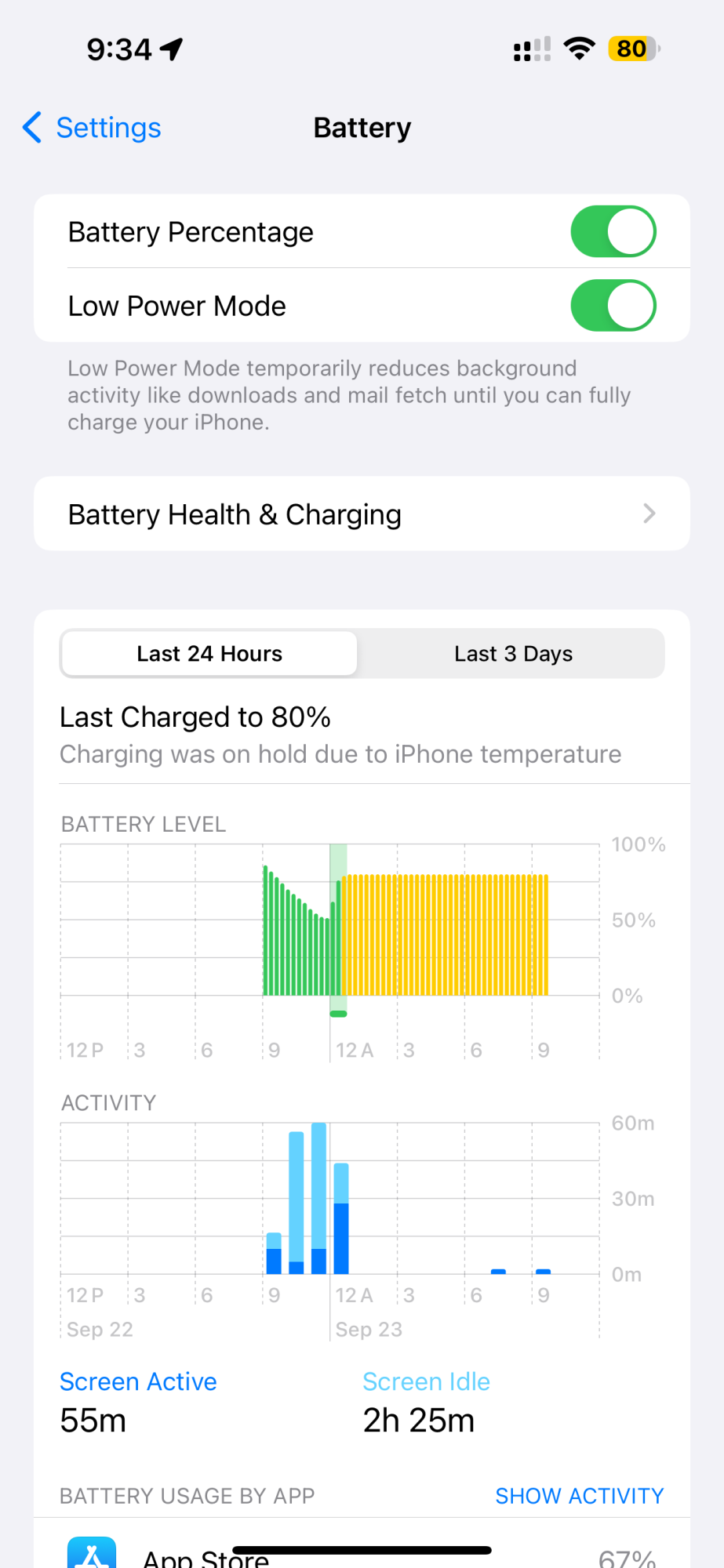 Anyone else less than enthused about the battery life? My battery is dropping like crazy.I’ve dropped 8% in 2 hours. I’m guessing it’s indexing, however screen time is showing my screen as being active for 4h27m when I haven’t even been awake for 3h27m and I turned always on off. No one could have used my phone. If it continues to do this, and it’s not indexing. I just might have to swap it out or go back to my 13pm.