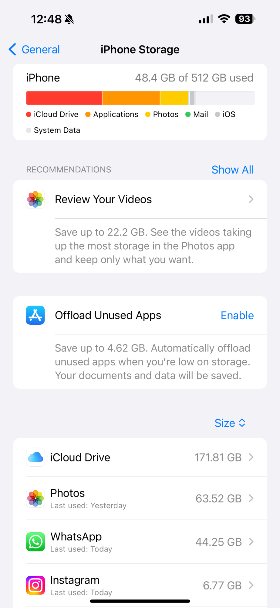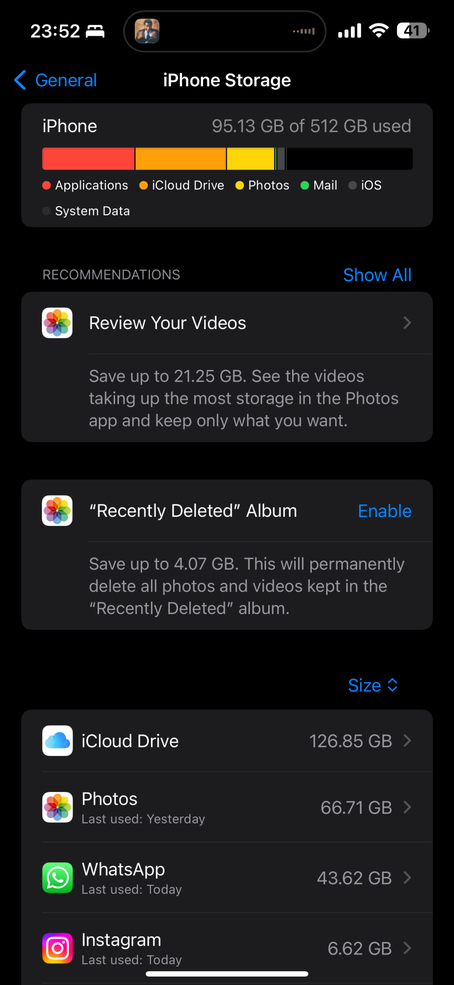 Under “about” it’s saying I have 374gb available and under “iPhone storage” it’s saying I’ve only used 95gb but has the bar 2/3 full. It also says I’ve used 127gb on iCloud Drive when before the update it was only showing 10gb used for iCloud Drive.