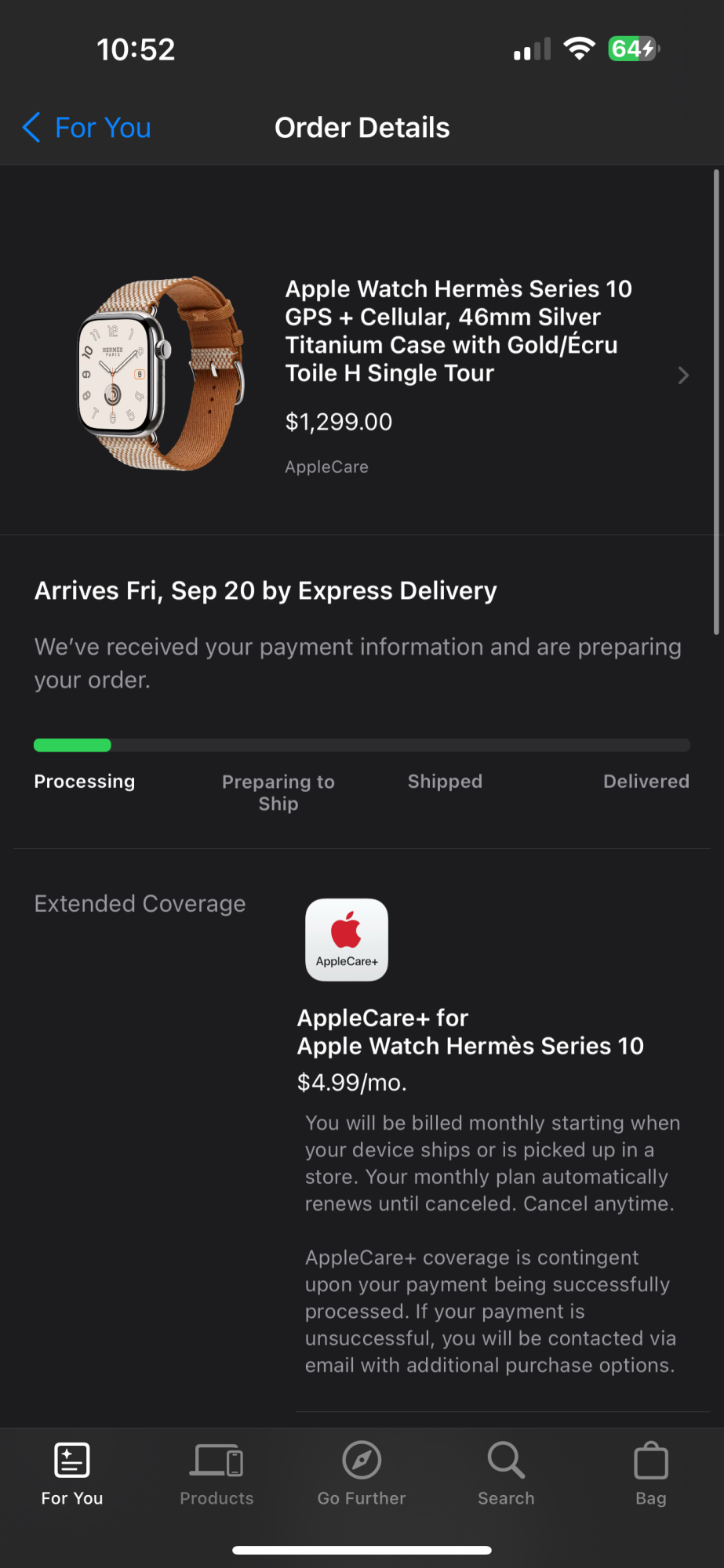 Finally got let in to order at 7 minutes past the hour. Paid with ApplePay but for some reason it went through as a guest order. It won’t let me add the order number to my Apple ID because it says it’s associated with another apple account (same email address, though?) Got the payment confirmation page an an order number, but I haven’t received a confirmation email yet and it hasn’t been charged to my credit card yet. Hmm. I guess I will have to wait and see?