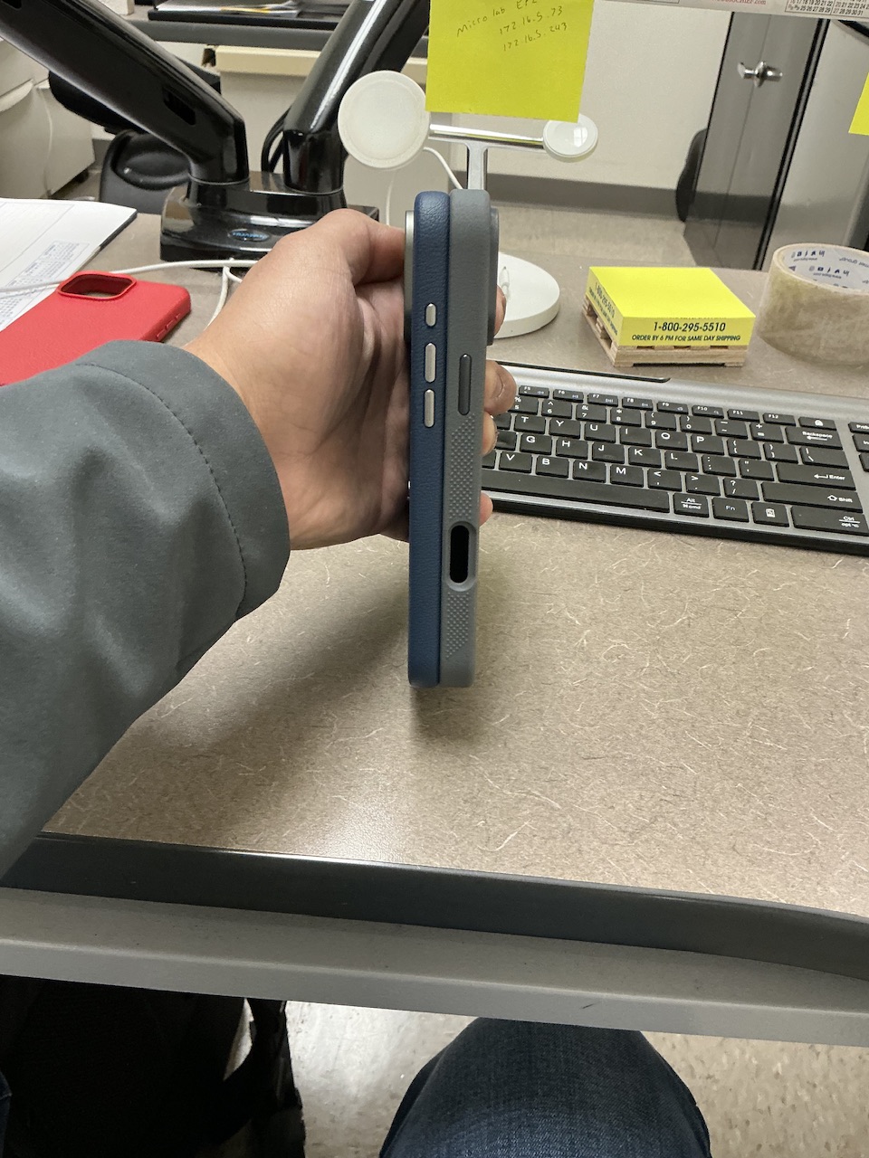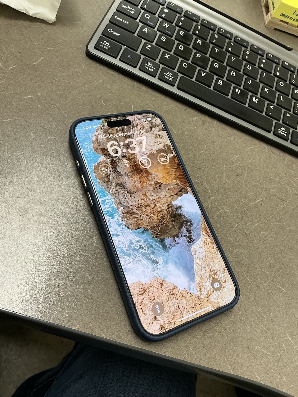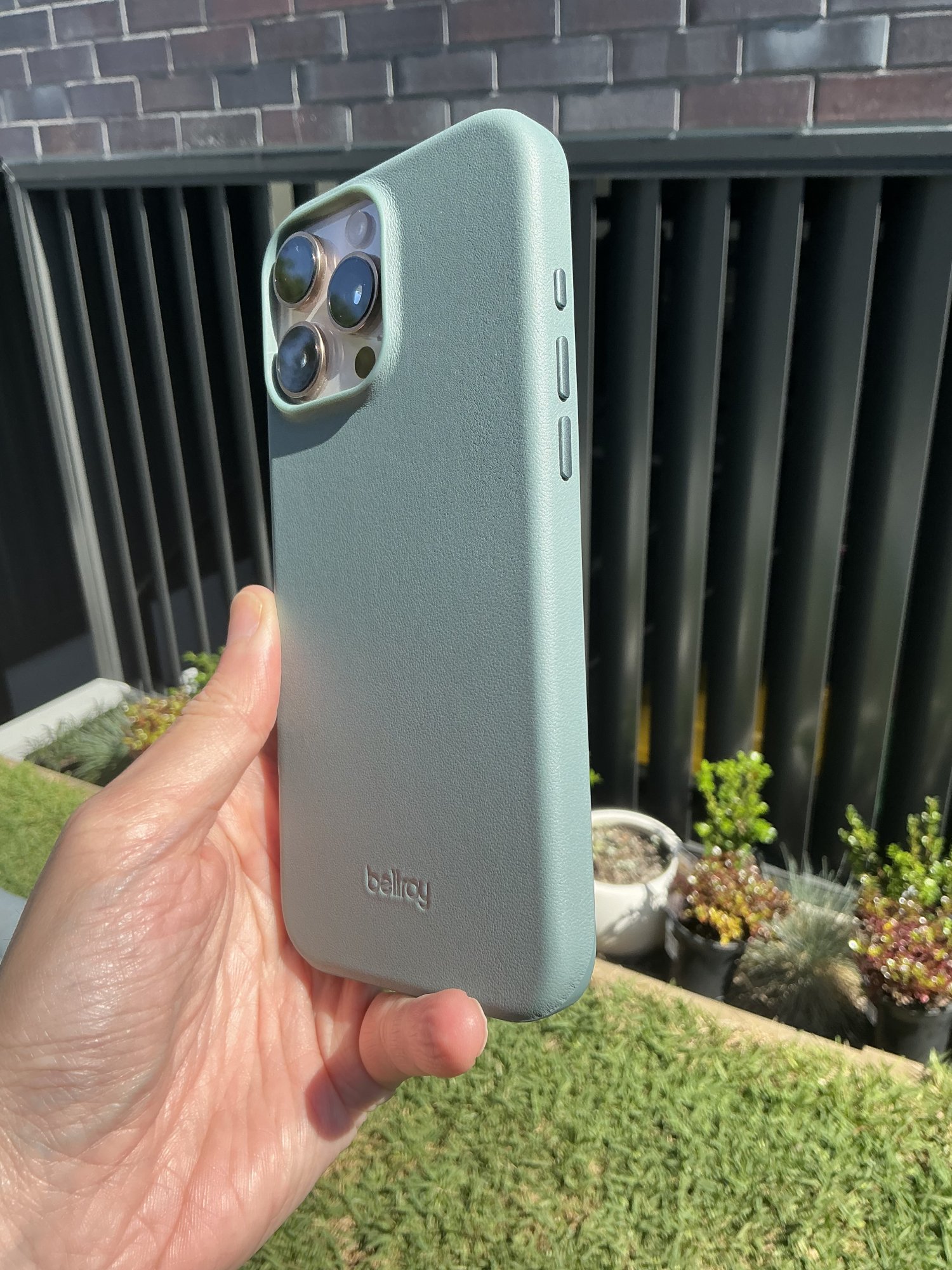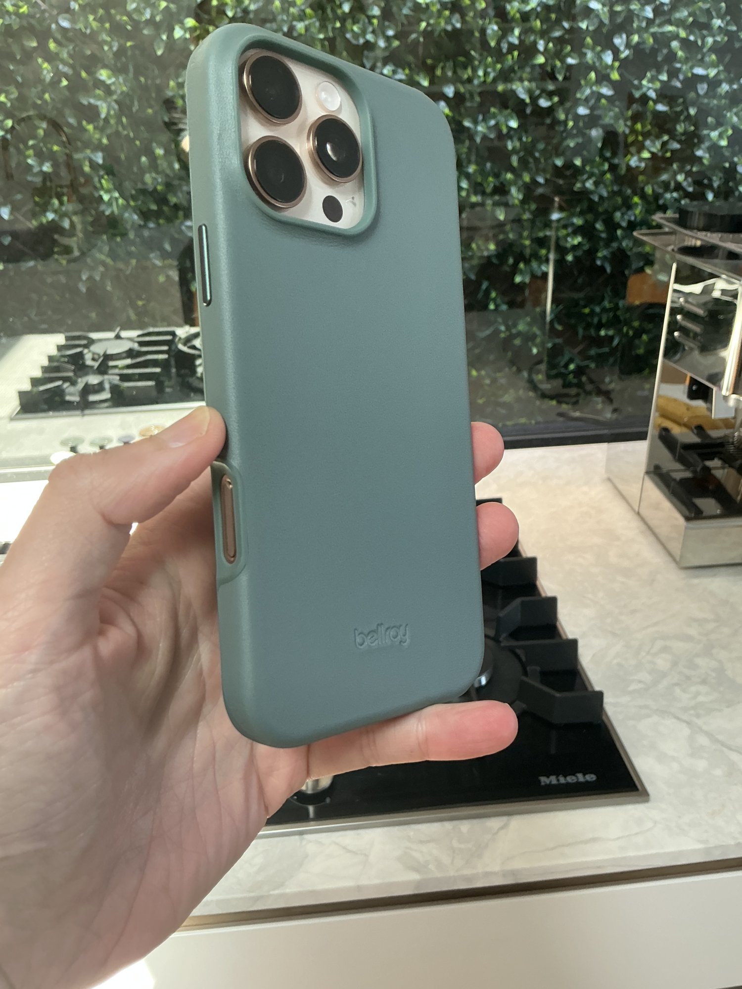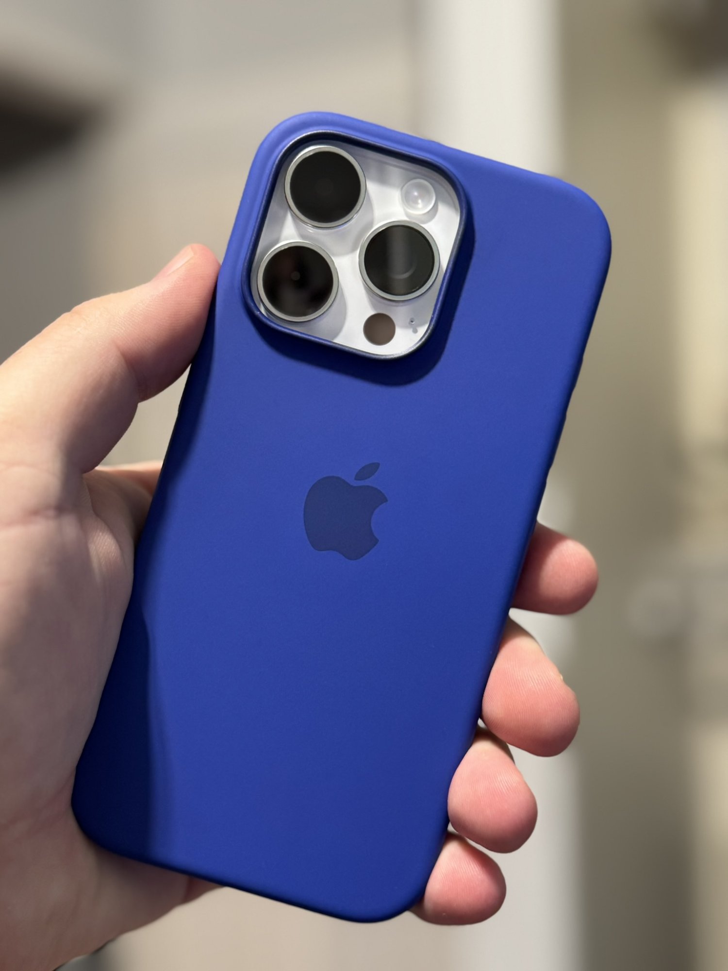 The camera control cutout is fine - not ideal, as it's not tapered so the button is a bit recessed, but I'm still able to half- and full press without any significant difficulty. And it's actually a good place to anchor the tip of my ring or middle finger while holding the phone one-handed; accidental presses of the camera control are quite unlikely. The metal buttons are nice an clicky, and while perhaps not as smooth around the edges as the buttons on my old Apple leather case, they're by no means sharp, and I like that both they and the camera surround are also blue.