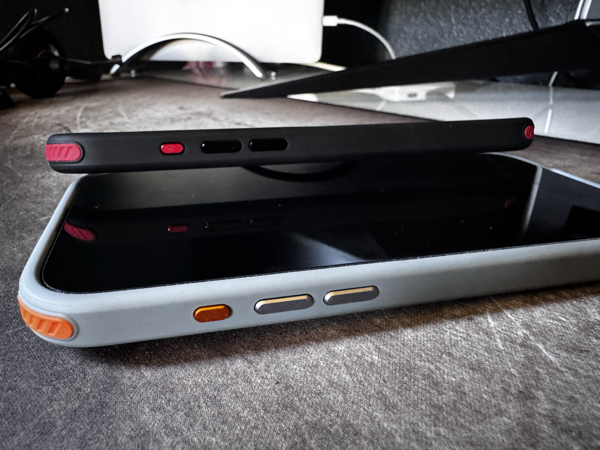 Including some images of the Prodigee Formula below. I like this one a lot - it is slightly larger than the apple silicone case but provides better protection. Not heavy at all - only .3 grams heaver than the silicone case. MagSafe compatible and the magnets are strong. The Camera button is a cut out but is fully functional and I find it helps to reduce accidental presses. I love that the back is frosted so it reduces the fingerprint visibility. It has aluminum buttons and accents around the camera. The gray case with orange matches my Apple Watch Ultra perfectly. Works with screen shields just fine - I have the Belkin UltraGlass 2 so you will see a small gap between case and screen shield but this helps to ensure no bubbling.