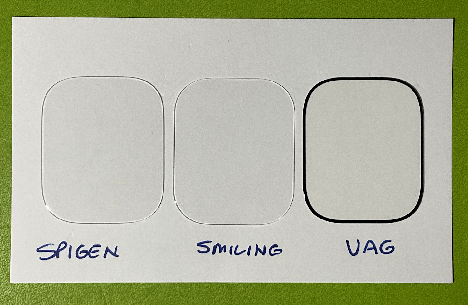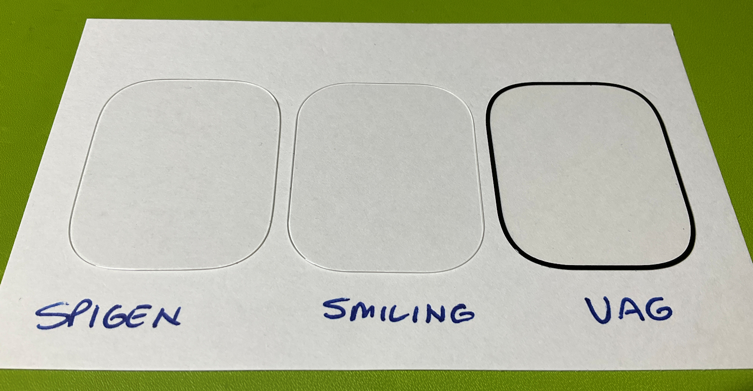 Here's a couple pics of these 3 different protectors on a piece of paper that I screwed up trying to install:
