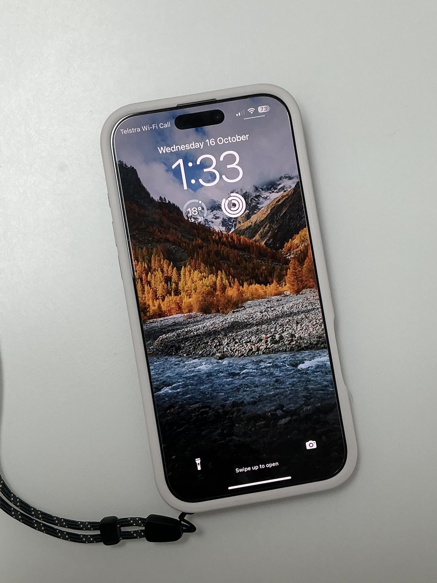 Bellroy venture case in chalk with lanyard. Feels solid and nice in the hands. Metal buttons are clicky and responsive.