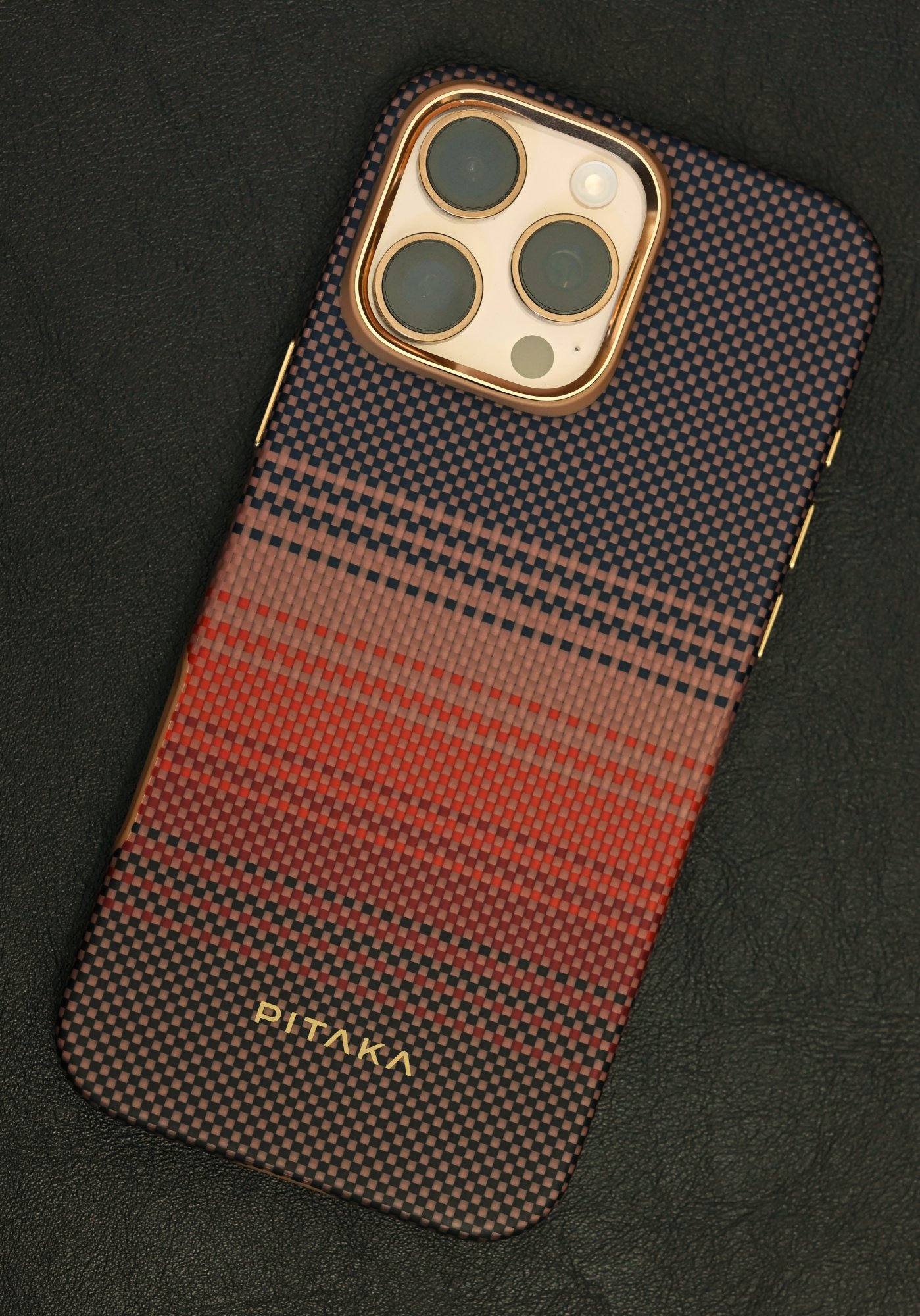 My Pitaka Sunset Military Grade case arrived today. What a beauty on the desert titanium. Hoping it doesn’t get too fingerprinty. What I do see is that oils that get onto it will show, but only at specific angles, so the color and pattern do a decent job of hiding those.