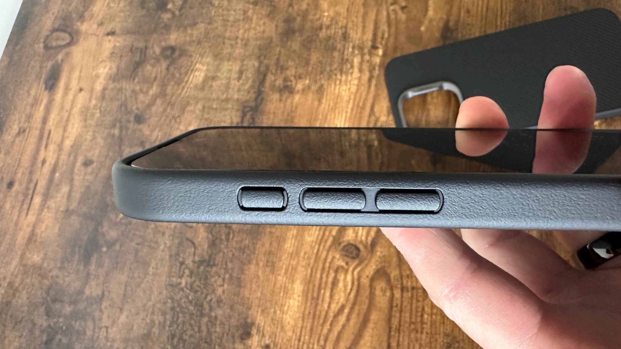 I prefer the floating metal buttons on the 15PM version but the buttons look fine with the black phone underneath.