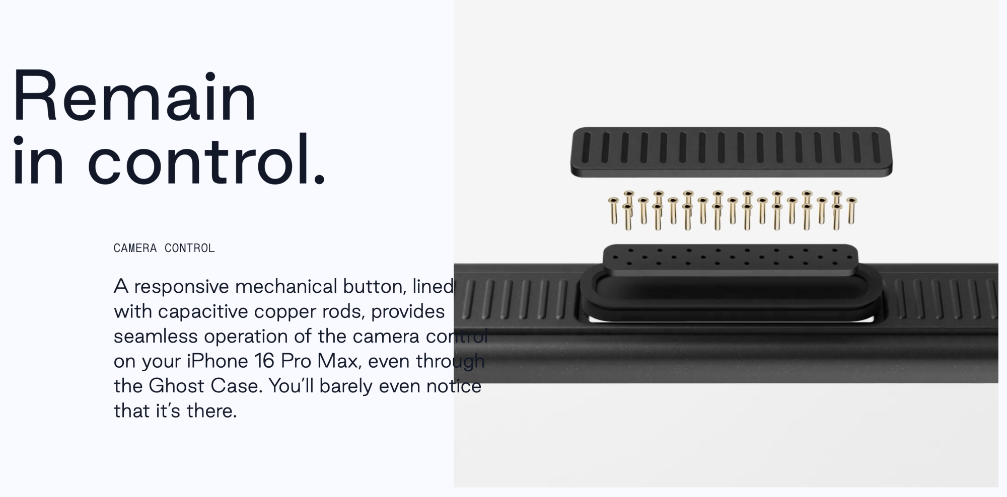 From my phone, it wasn't apparent until I selected the 16. The 16 wasn't the default option when I clicked on the link. I'm sort of surprised that despite coming out in January, the camera button uses only copper rods! That's unfortunate! What's the grippiest case at the moment?The Ghost looks really good. Just did a preorder for one. If you scroll down to the bottom of the page it does clearly highlight a Camera Control button on the case. This could be one of the best cases of 16 series.