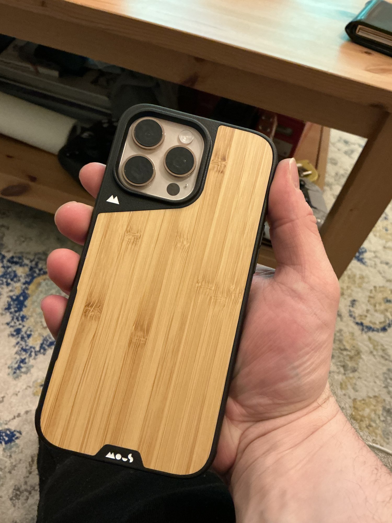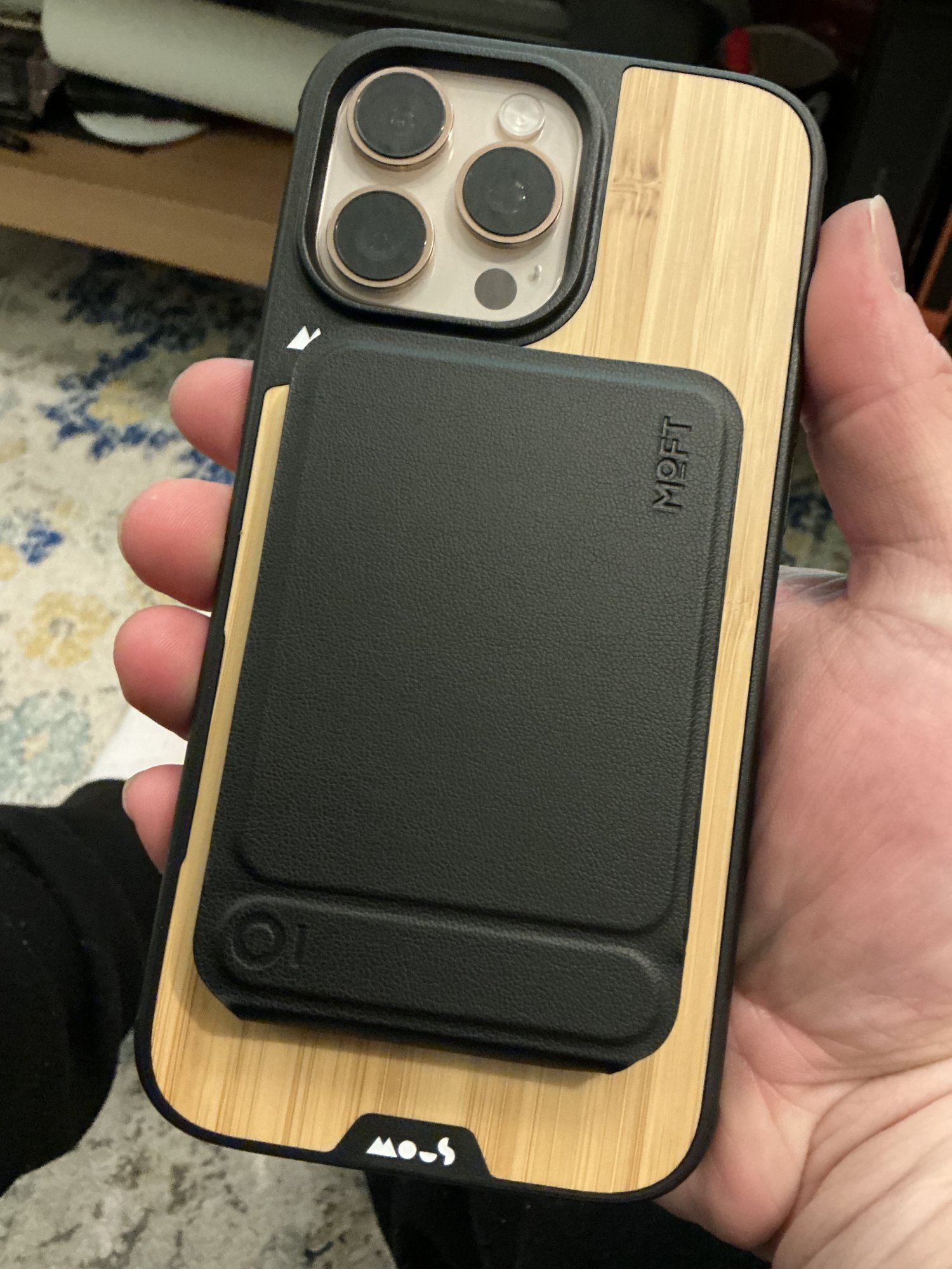 I always loved the Mous bambooHere’s some pics of the case w/ my moft phone stand wallet and without . Still a solid case thankfully the glass stuck on again. Pretty good fit. Buttons feel more responsive and clicky vs my cutout clear Mous case. Think I’ll enjoy this case (especially if my complaint to Mous leads to a free case 😉)