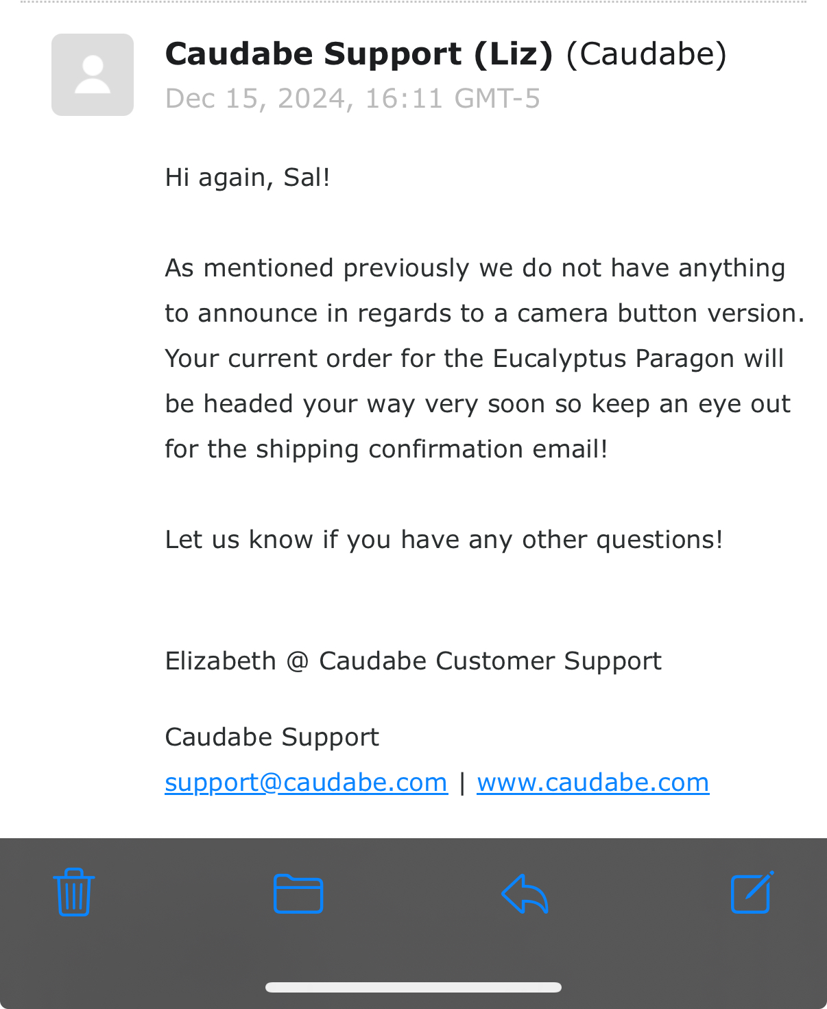Bottom line: If you love the Sheath/Synthesis style of a case and have been bummed that Caudabe hasn't released a camera control cover version, then this is by far the best current substitute. It's super cheap at around $16. Unfortunately, color options are very limited. I went with the Stone for the time being.