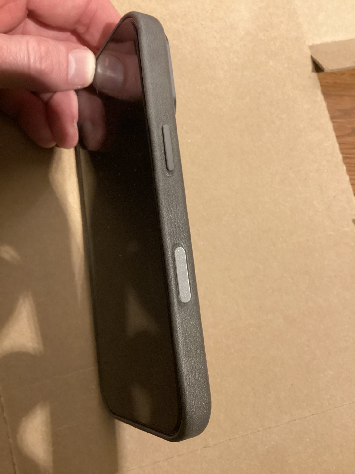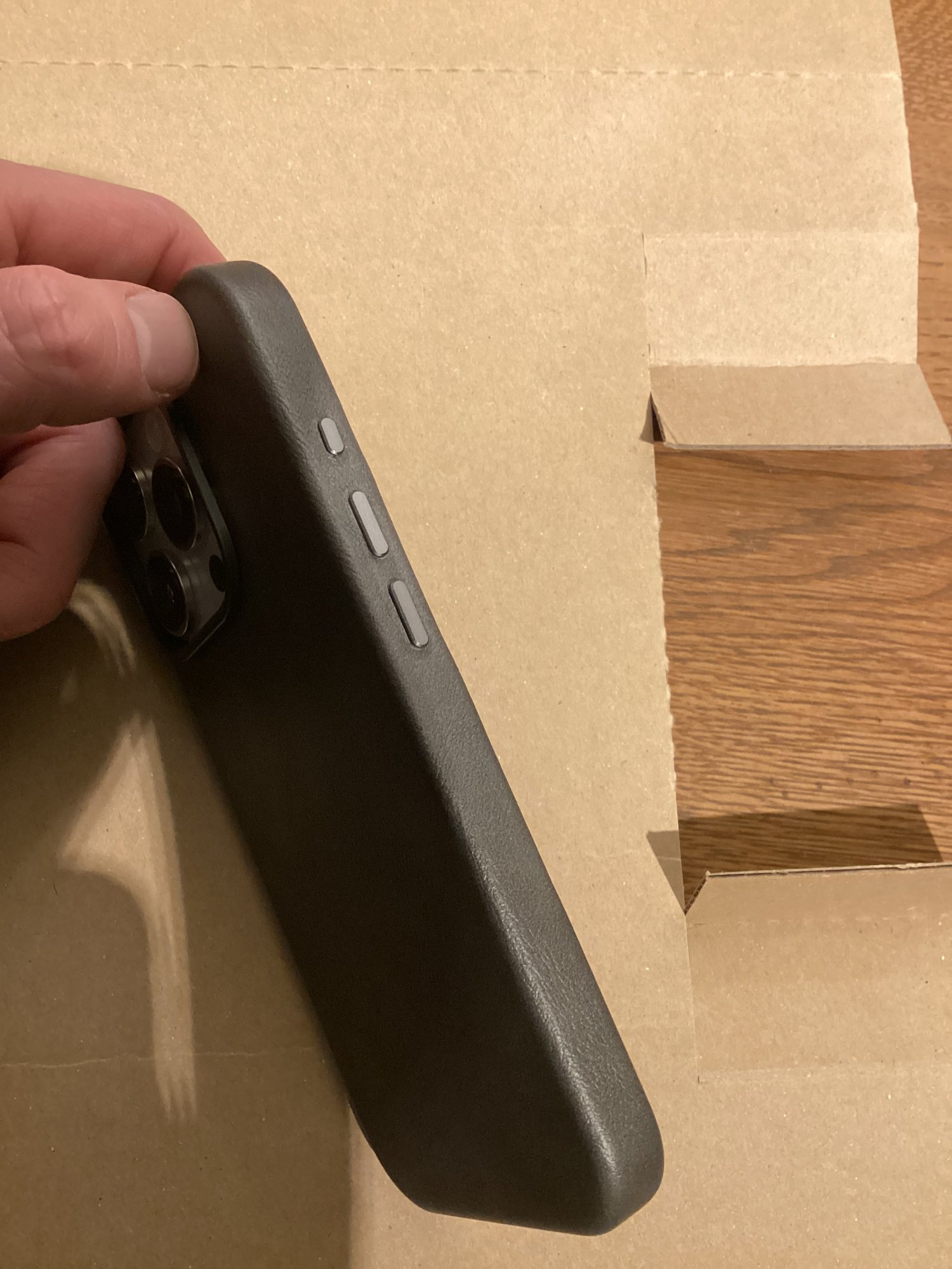 Feels like leather, decent magnets, clicky buttons, very slim and tight fitting, working CC button. A great find and I’d recommend giving it a try if you’re struggling for a closed bottom, CC covered leather case. Patina process and smell aside, I think you’ll struggle to tell it’s fake.