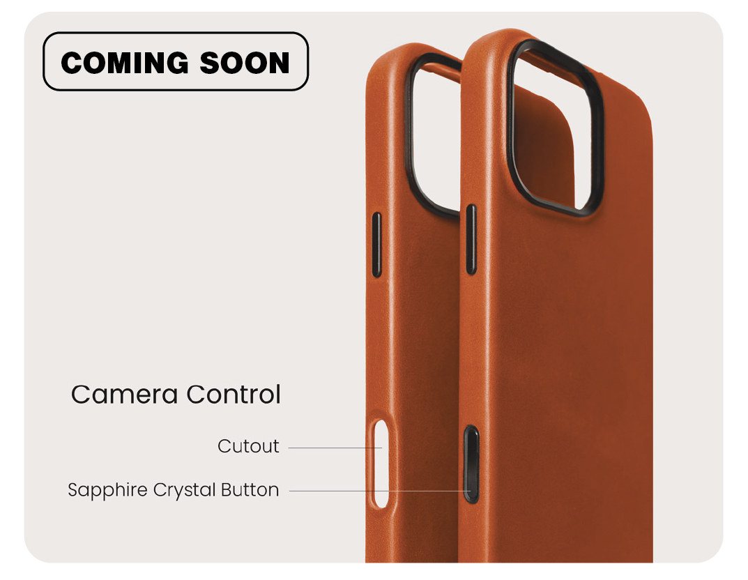 "And as per your request: The Button-equipped iPhone 16 camera control version of the Ryan London leather case is just a few weeks away! This version will be available under the original product, where you can select the cutout or buttoned case as a variation."