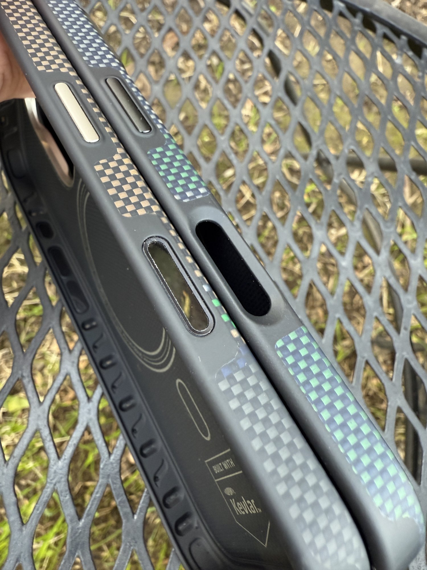 The fit is tight and no loose buttons. The buttons compared to last generation don't protrude as far out. Since the aramid fiber shell now extends to the sides and top, it creates a very rigid frame for the TPU to mold around. Aramid is textured so you get a feel of the weave. I give the PhoneRebel a 10/10 in terms of fit and tightness, this one is a 9/10.