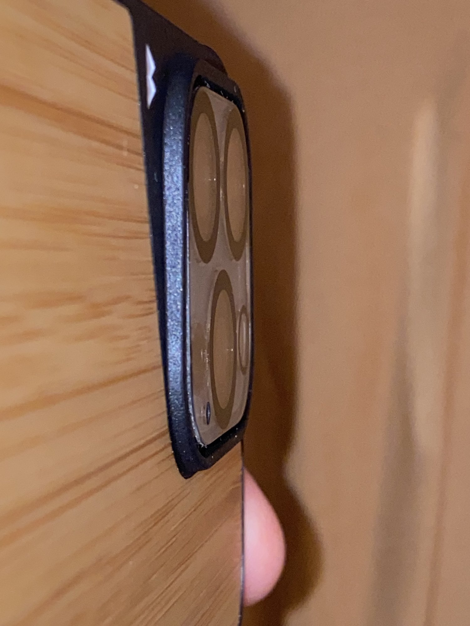 Both bezels for rear camera element are too short when using a protector over the camera element. I tried taking photos to illustrate.