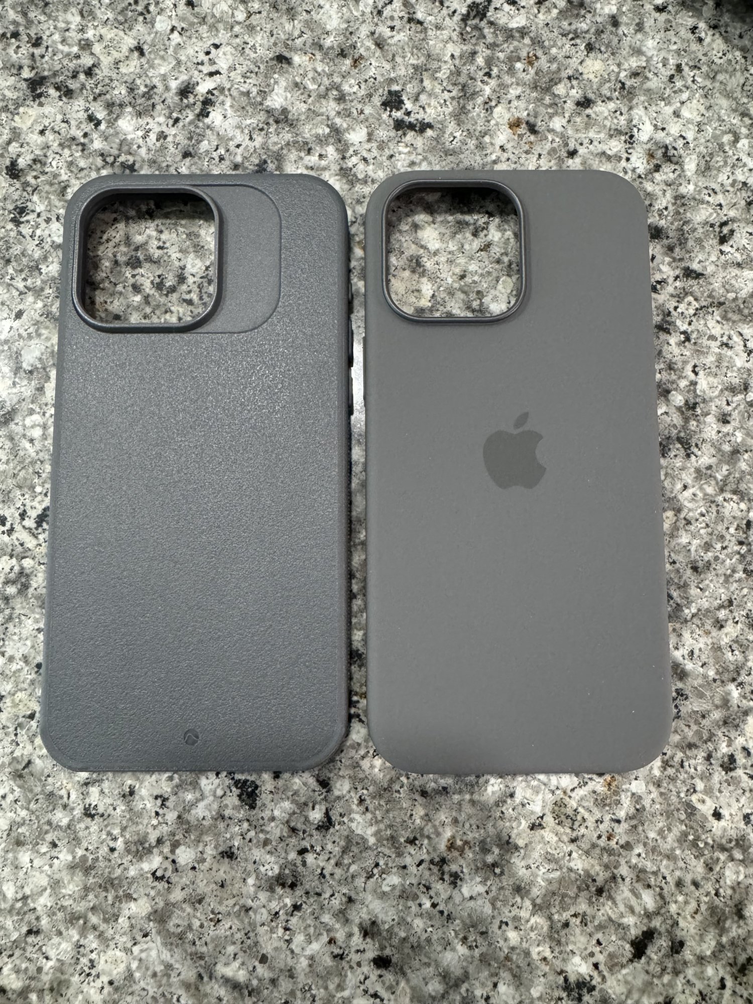 I totally agree that leather feels much better but I couldn’t find one that covers the new camera button like the Apple cases. The cutout is a no go for me.I included a silicone case with my preorder. I will use that until my leather case arrives. I don’t mind the silicone case. However, I like the feel and grip of the leather more.