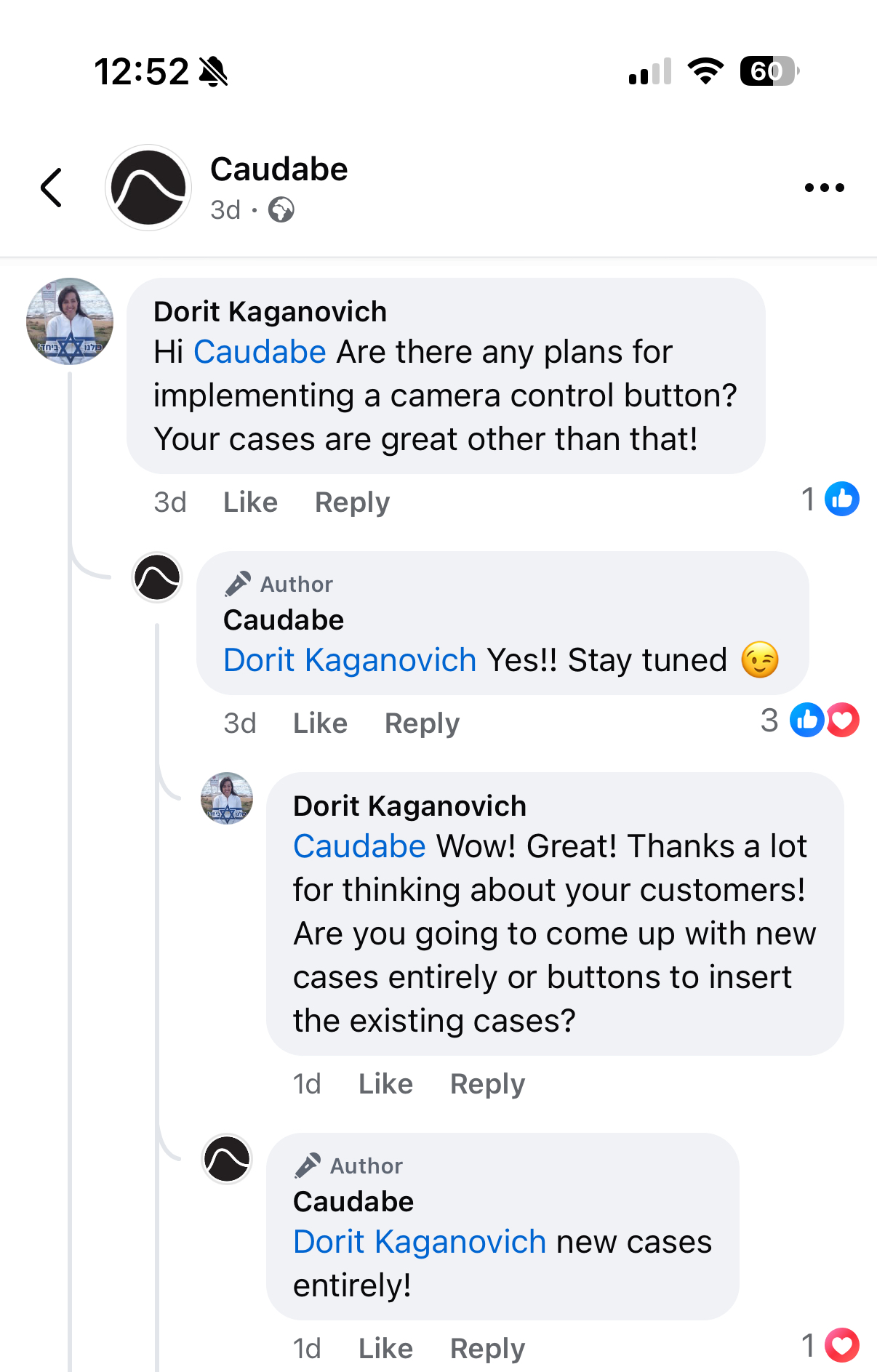 Not sure if someone else already mentioned this, but Caudabe’s Facebook account just said that they are soon releasing new cases with Camera Control buttons.