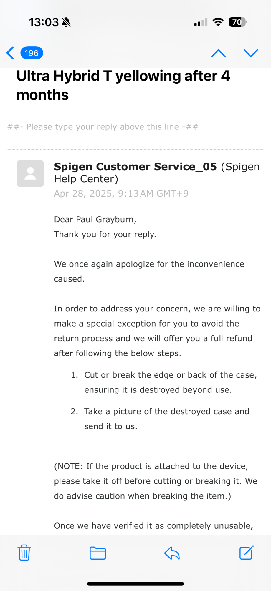No kidding... this seems to shift the work to the customer. A return is easier.Just send me a new case Spigen FFS 🙄