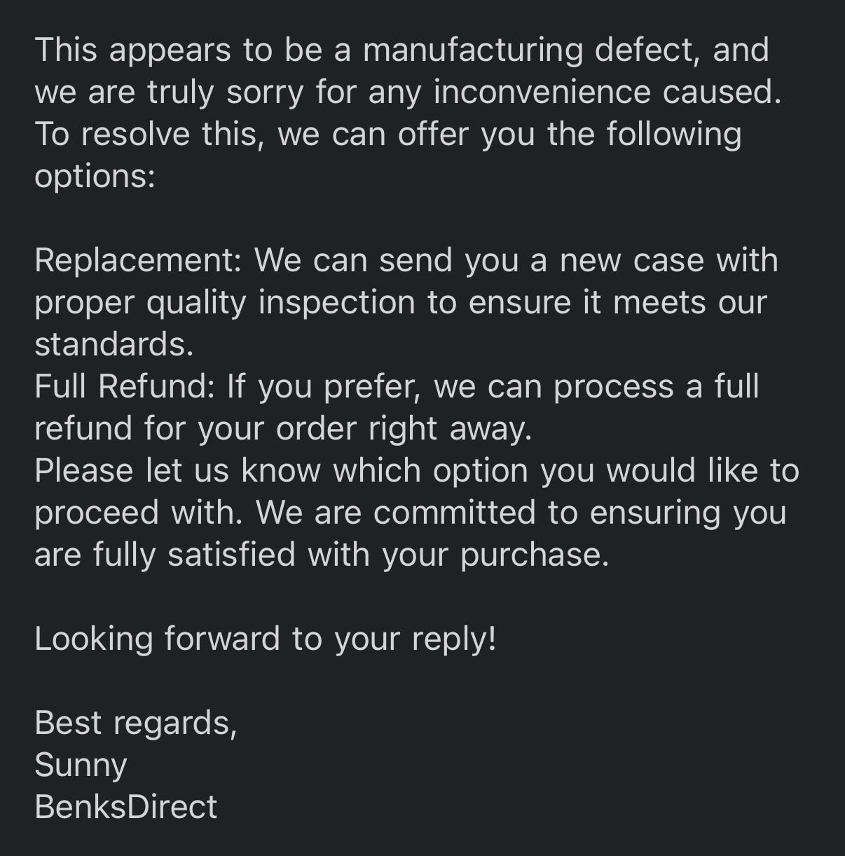 Yeah, emailed them with pictures of the issue and order number. They offered full refund or a new case.You got full refund for that??