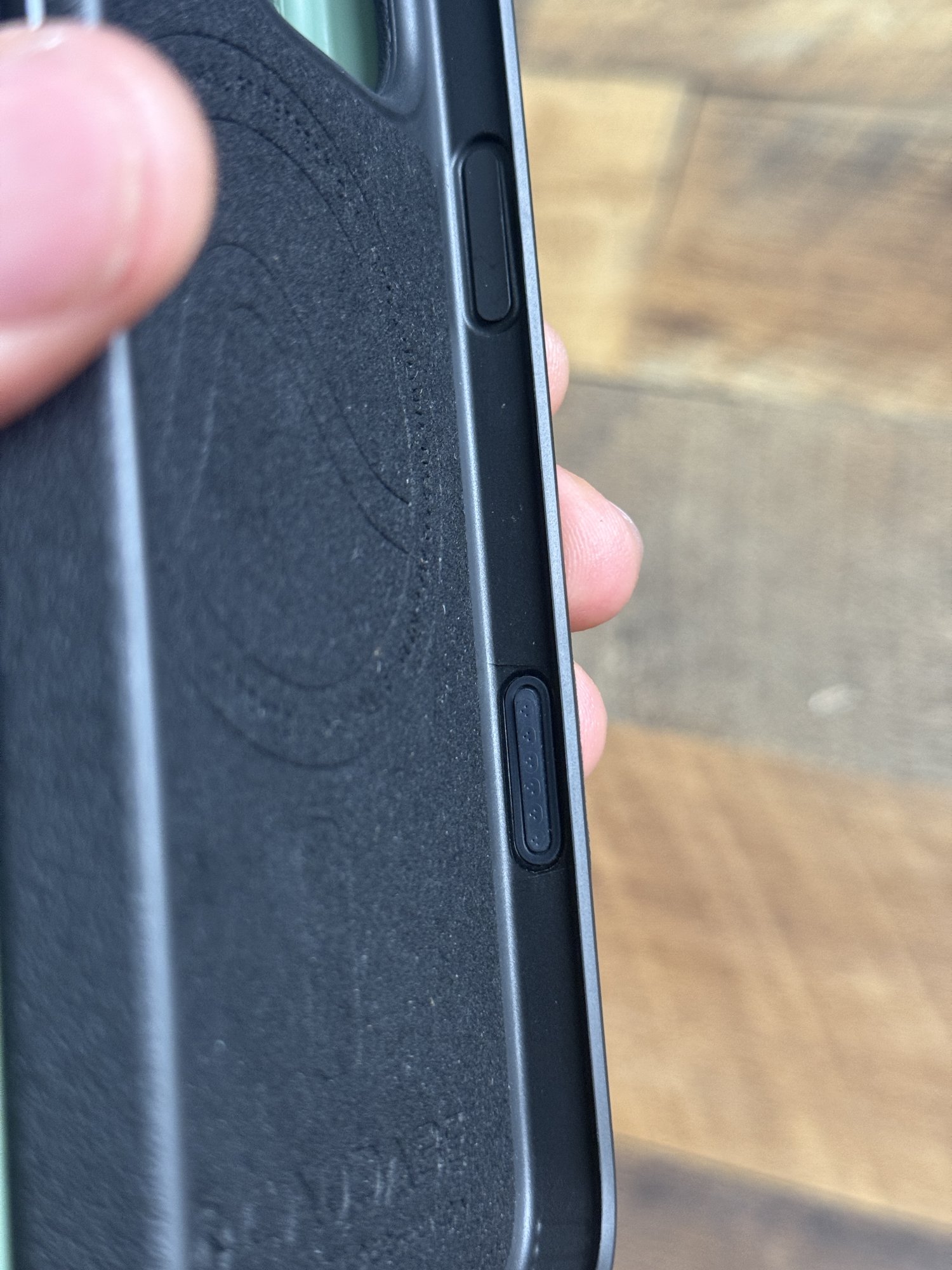 Looks similar to PR CC button. Does the finger gets stuck whilst swiping because of the grip around the button?Here is the updated Sheath with the camera control button. Button of course works flawlessly, no misreads or anything like that after messing with it for some time. Button does not pop out easy but if you press hard enough (you really have to press hard as if you are intentionally trying to pop the button out) and you can tell it is held on by adhesive but trust me it does not pop off easy. Fit near the camera control button is stiff and isn't loose near the button at all. Very nice button (took a long a** time) but now the case feels complete.