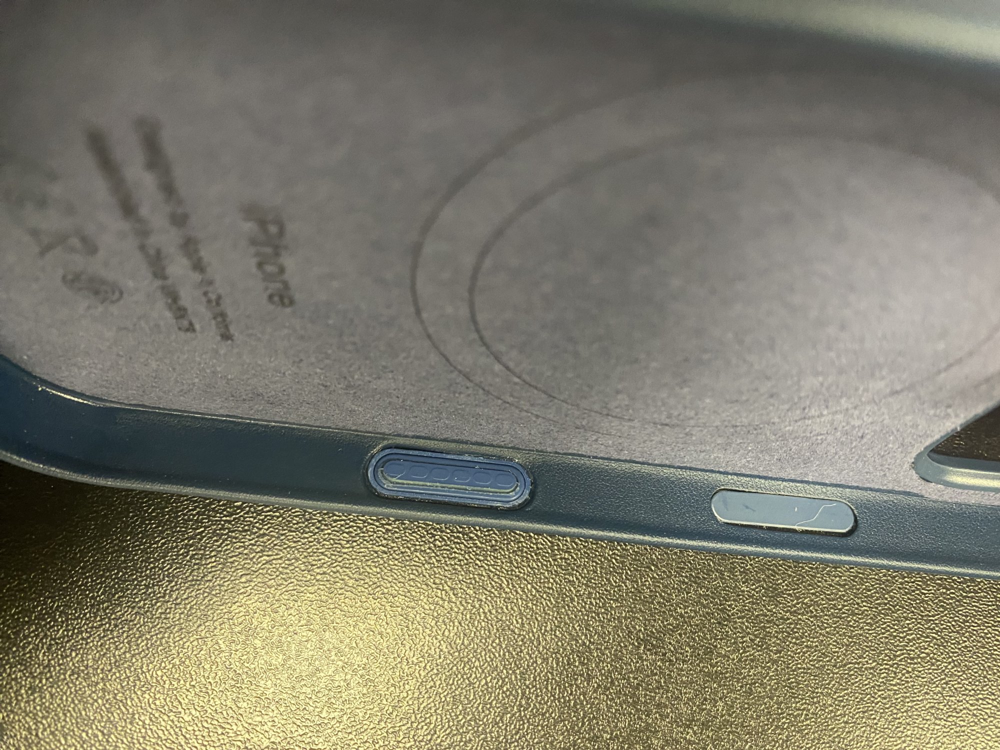 Mine is too. It’s just that it feels narrower than say the original silicone case and harder to press it, requiring more force. Other than the buttons, I really like the looks of the case and the right amount of grip. It’s staring to grow on me and I’m going to keep using it until the caudabe 🤬 cases arrive.No creaking at all for me. My CC button is completely flush with the case too