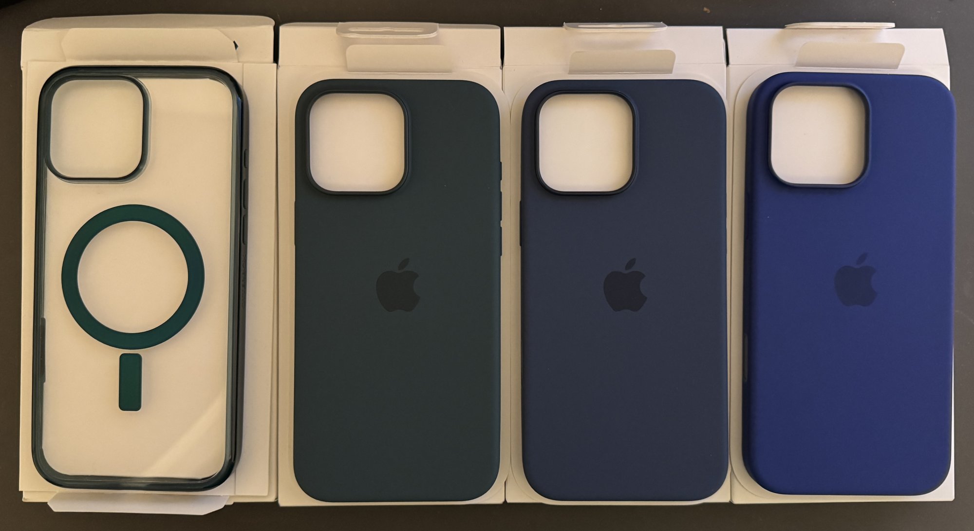View attachment 2418338I went to my local Apple store to pick up these cases yesterday. I wanted to see which blue I preferred. Left to right: Otterbox Lumen (Mallard); Lake Green; Denim; Ultramarine.