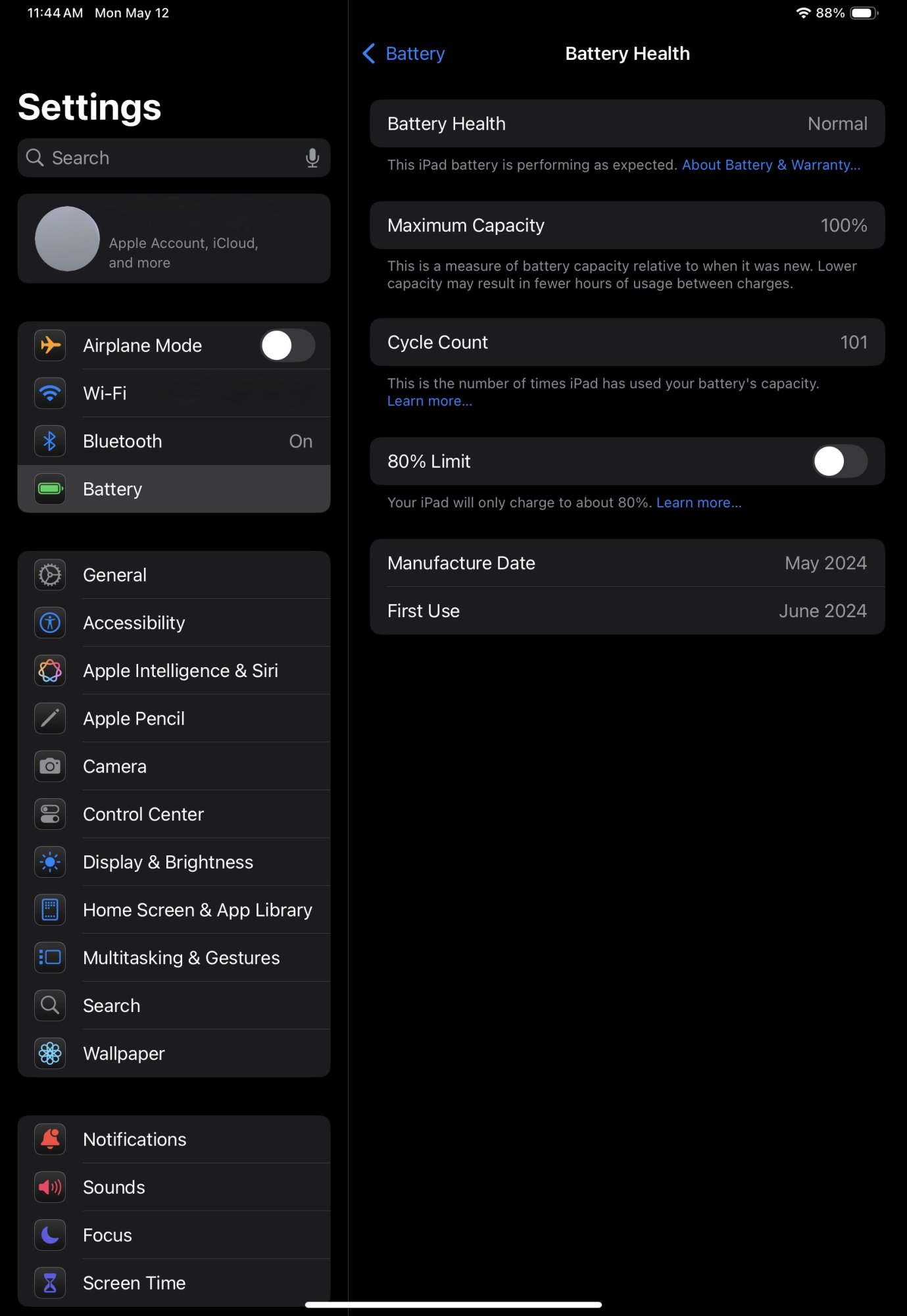 iPadVery low cycle count for 8 months, I see in your signature that you have an M4 iPad Pro, how’s that one’s health and cycle count?