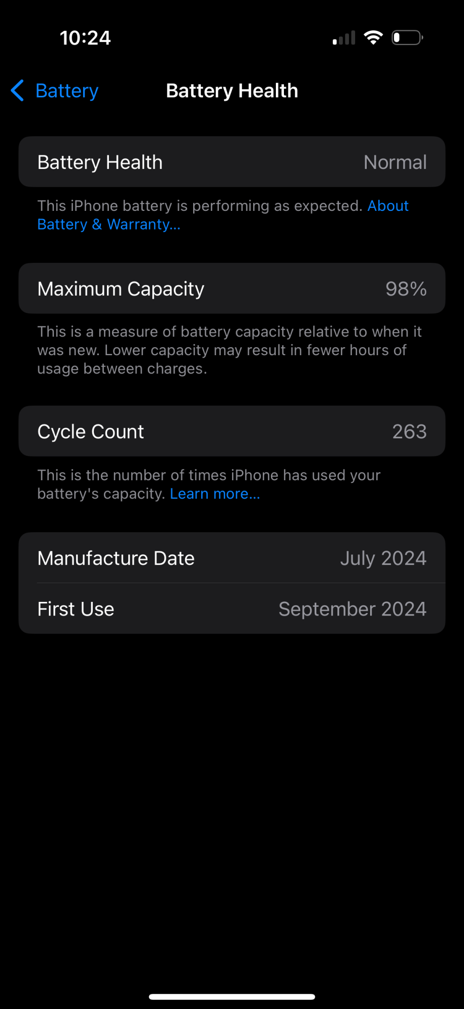 Very low cycle count for 8 months, I see in your signature that you have an M4 iPad Pro, how’s that one’s health and cycle count?16 Pro Max