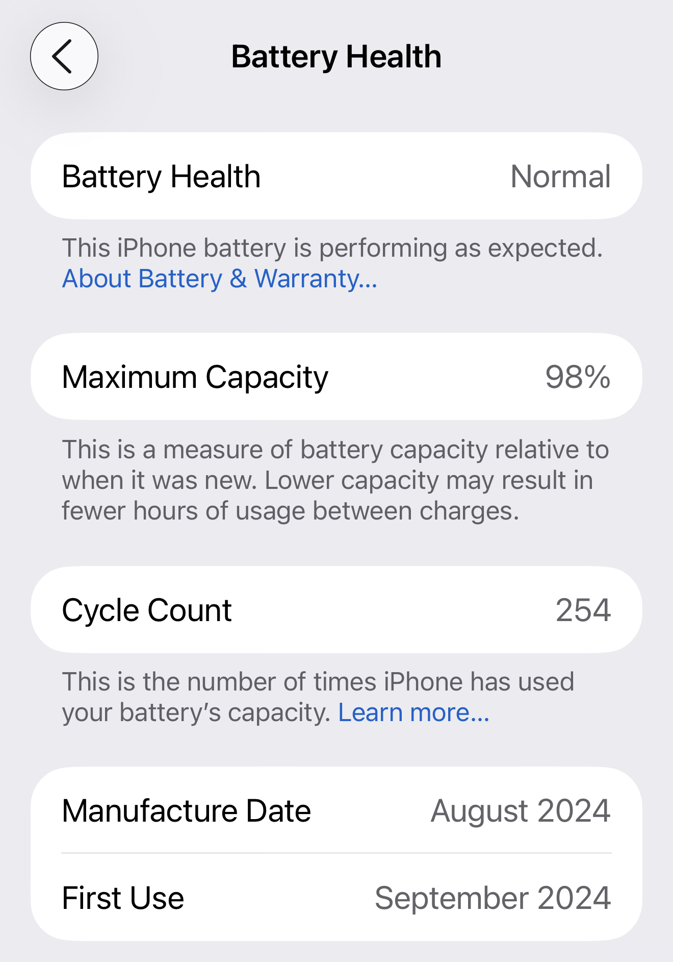Since September 2024, my iPhone 16 Pro Max has been limited to an 80 percent charge, with no cheating. As of today, my battery's maximum capacity is at 94 percent with 299 charge cycles.