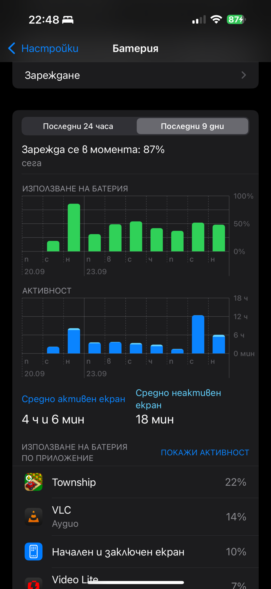 Not to rush, to praise her, but there is progress. 20% more durable today than last Sunday. Then with the same usage by noon it was down to 35% and this evening it was 60%. The only difference is that then I had only charged it to 80%, and today to 100%. And by noon today it had dropped by 24%, and then by 45%.So you are happy with a battery?