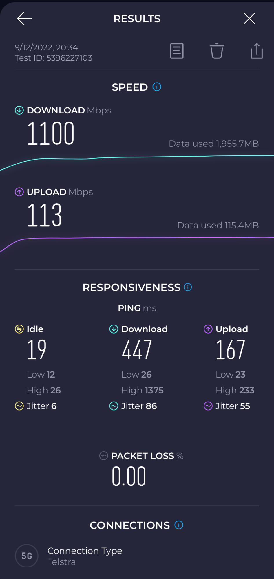 Which part of Australia did you get this speed? I never saw this high even in Sydney CBD.I was about to say. The results in the article don't seem to be limited by the phone but rather the carrier. This from my iPhone 12 Pro a couple of years ago: